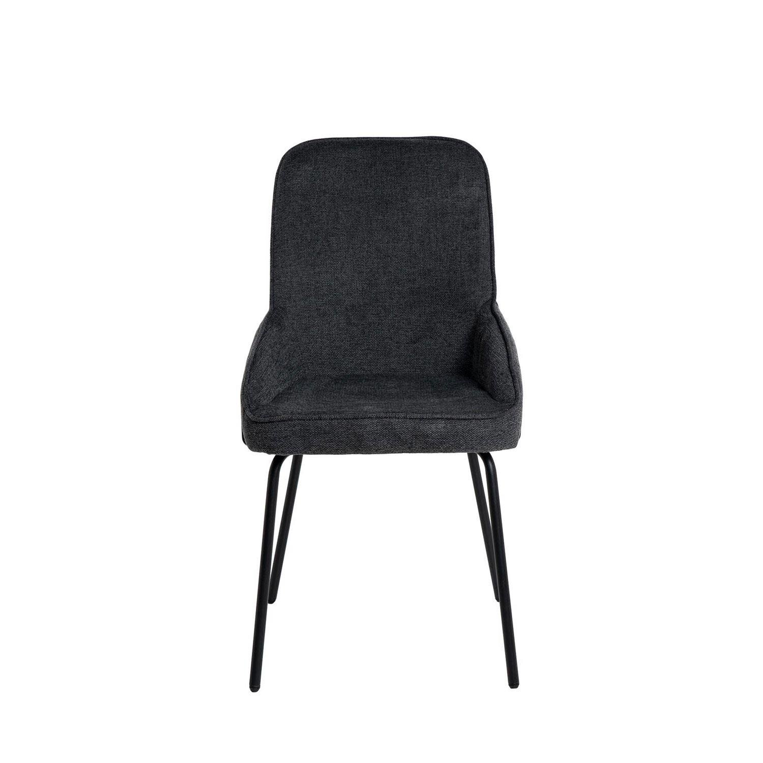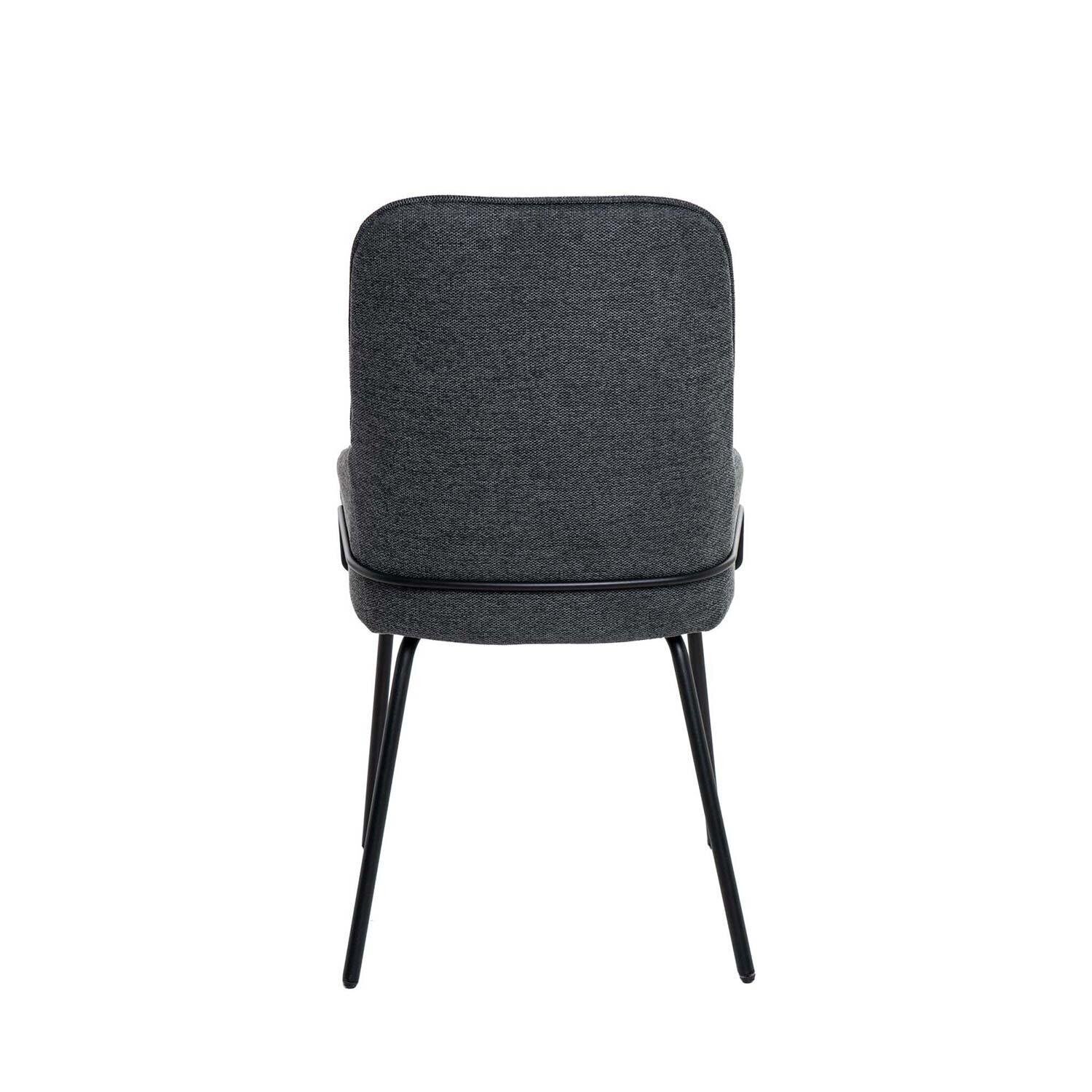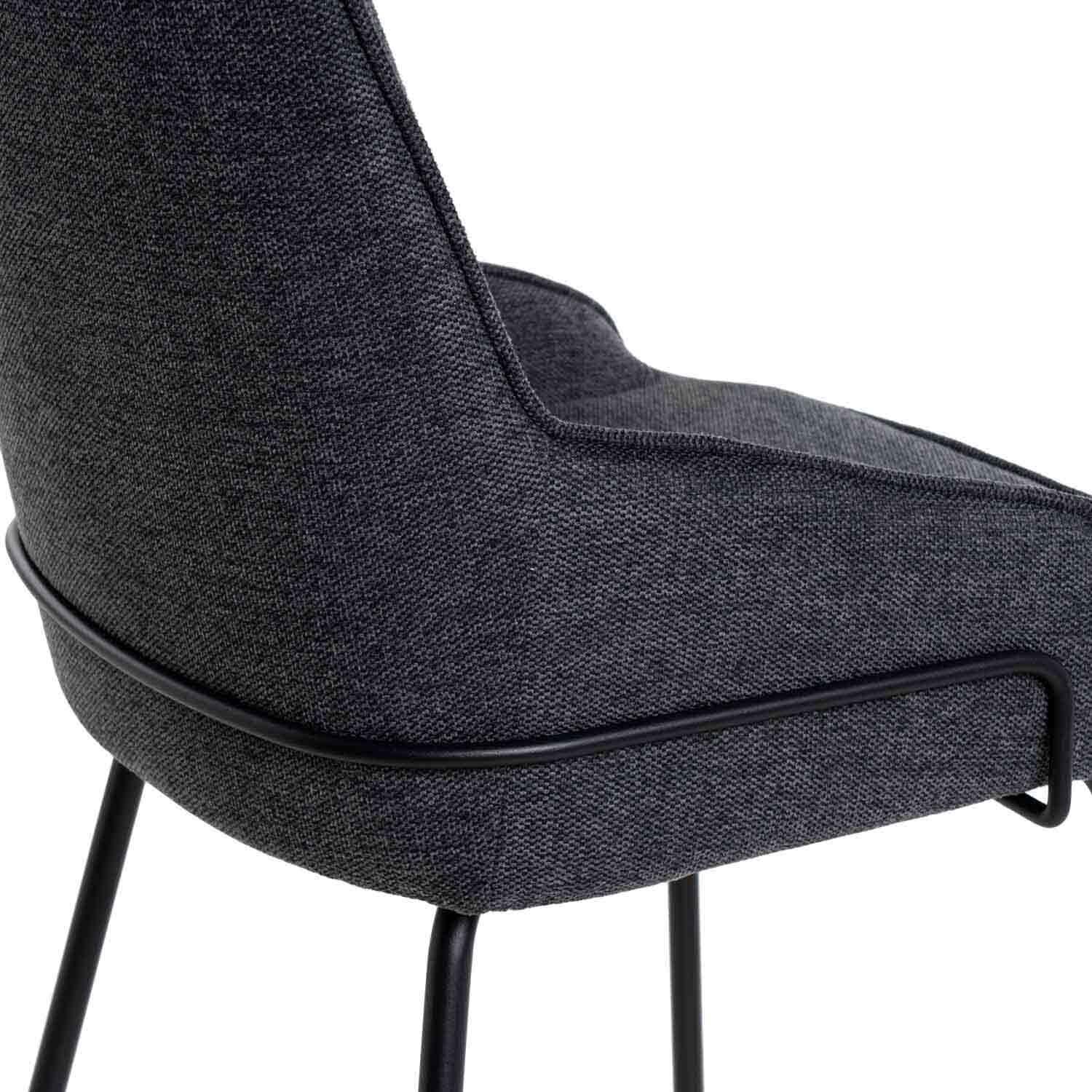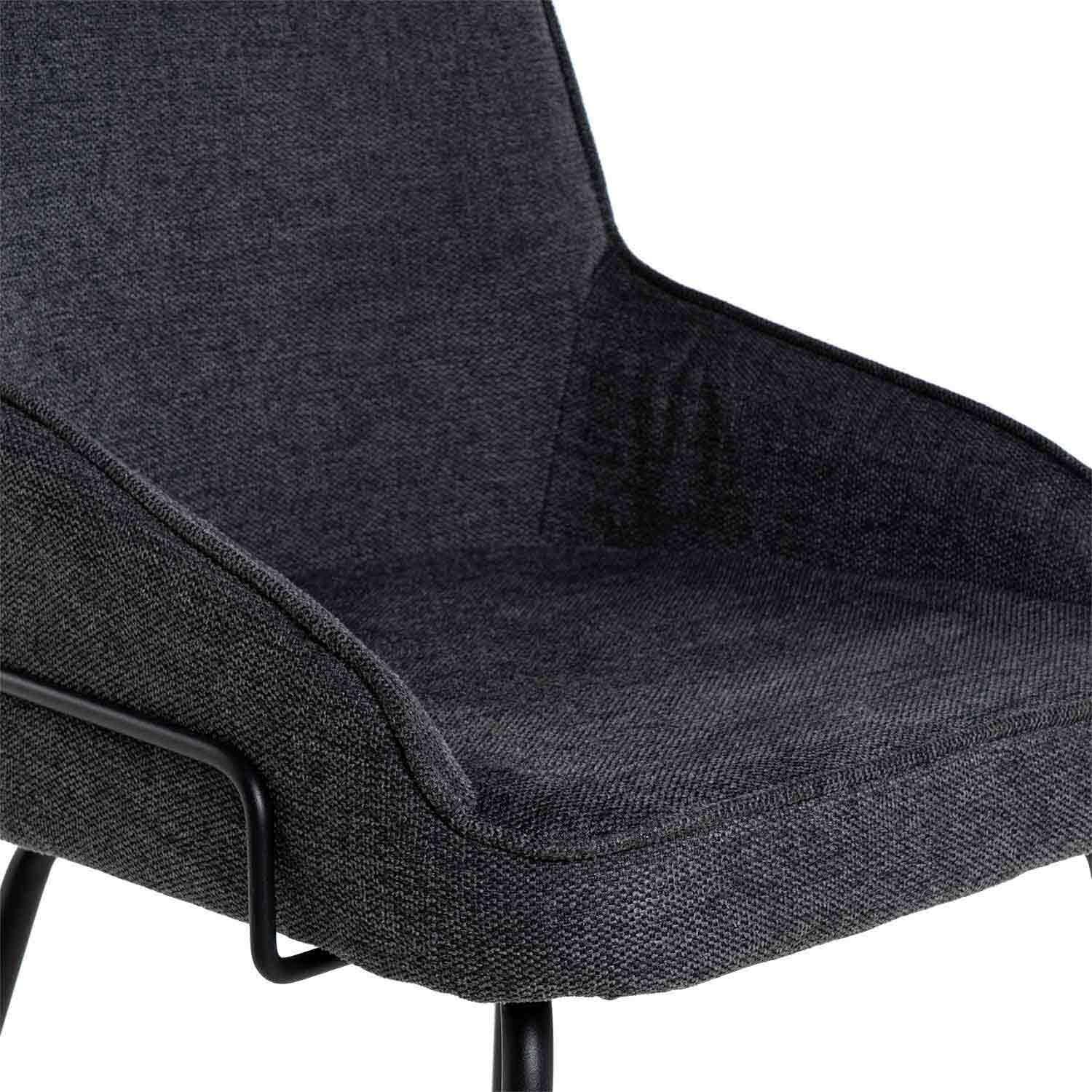 Elegante silla con respaldo alto y estructura acolchada, diseñada para maximizar la comodidad y el uso prolongado. Como detalle de diseño, la barra metálica negra en la parte trasera del respaldo, al igual que sus patas, le confiere un toque sofisticado y moderno. Además, cuenta con reposabrazos que aumentan aún más su comodidad, permitiendo un apoyo ergonómico para los brazos.