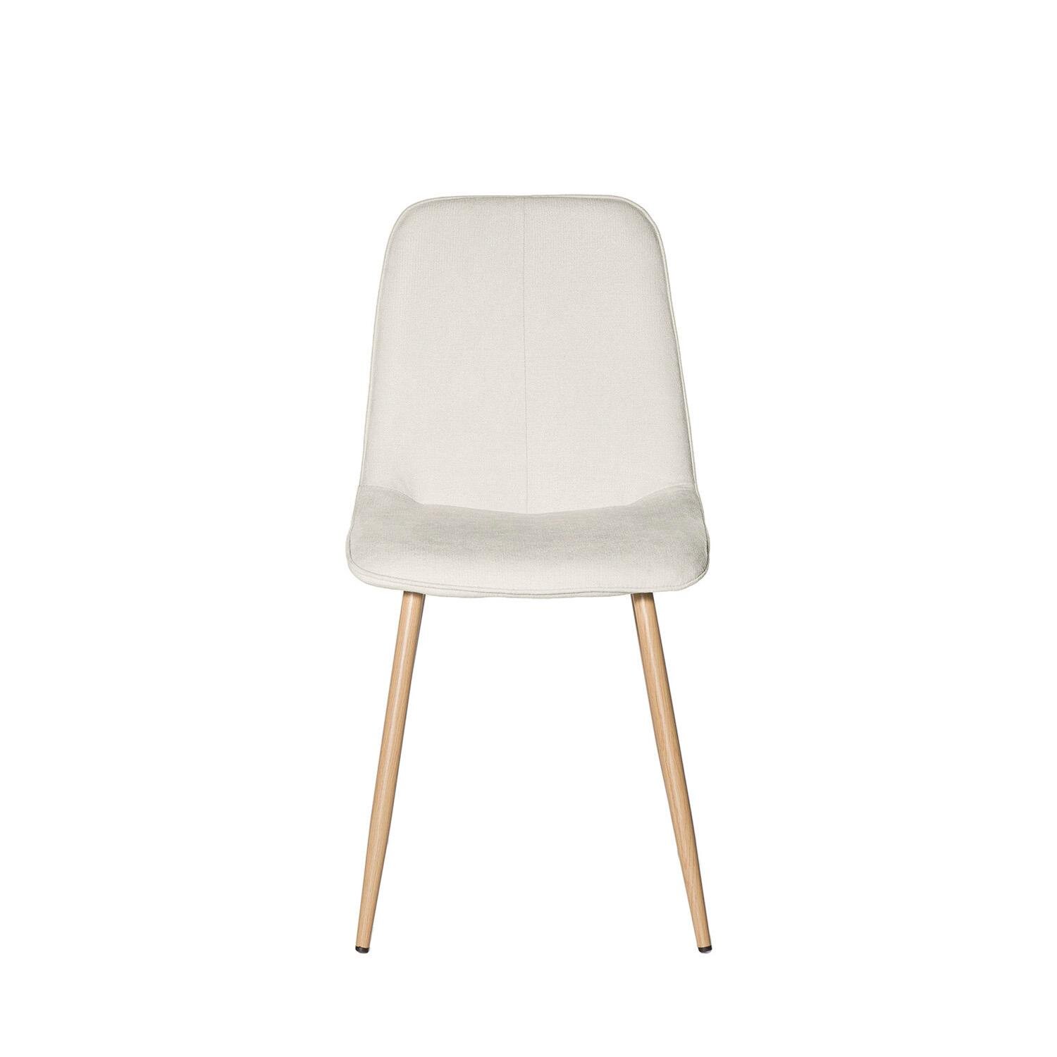 Detalles: Características: Ancho total: 45 cm Alto total: 87 cm Fondo total: 55 cm Peso: 5 kg Altura suelo asiento: 48 cm Altura respaldo: 40,5 cm Ancho respaldo: 33 cm Ancho asiento: 45 cm Fondo asiento: 40 cm Medida entre patas (frontal): 40 cm Medida entre patas (trasera): 40 cm Medida entre patas (lateral): 43 cm Advertencia tolerancia: +/- 2 cm | PAQUETES: Nº paquetes: 1 Artículos por paquetes: 4 Dimensión paquetes: 65 x 46 x 70 cm Peso embalaje: 19 kg Tapón en patas: SÍ Manipulación: 1 persona | CARACTERÍSTICAS: Tejido: NILO/BEIGE Apilable: NO Giratorio: NO Requiere montaje: SÍ Peso soportado: 120 kg Código del producto: 00SL113525 Las imágenes y/o colores de los productos pueden variar ligeramente por motivos de calibrado de pantalla, luz ambiente de la fotografía, ángulo de la misma, remesa producción madera, textil, etc. | MANTENIMIENTO: Recomendaciones: No colocar cerca de fuentes de calor o luz solar. Es recomendable quitar el polvo de los tapizados. Los elementos afilados o metálicos pueden rayar la superficie o producir desgarros. Uso y mantenimiento: Limpiar con paño ligeramente humedecido en agua y jabón neutro con movimientos en círculo. Frotar suavemente. Secar con paño seco. No utilizar productos abrasivos o químicos (lejías, acetonas, disolventes, etc.). Se puede utilizar ligeramente agua y jabón neutro para superficie