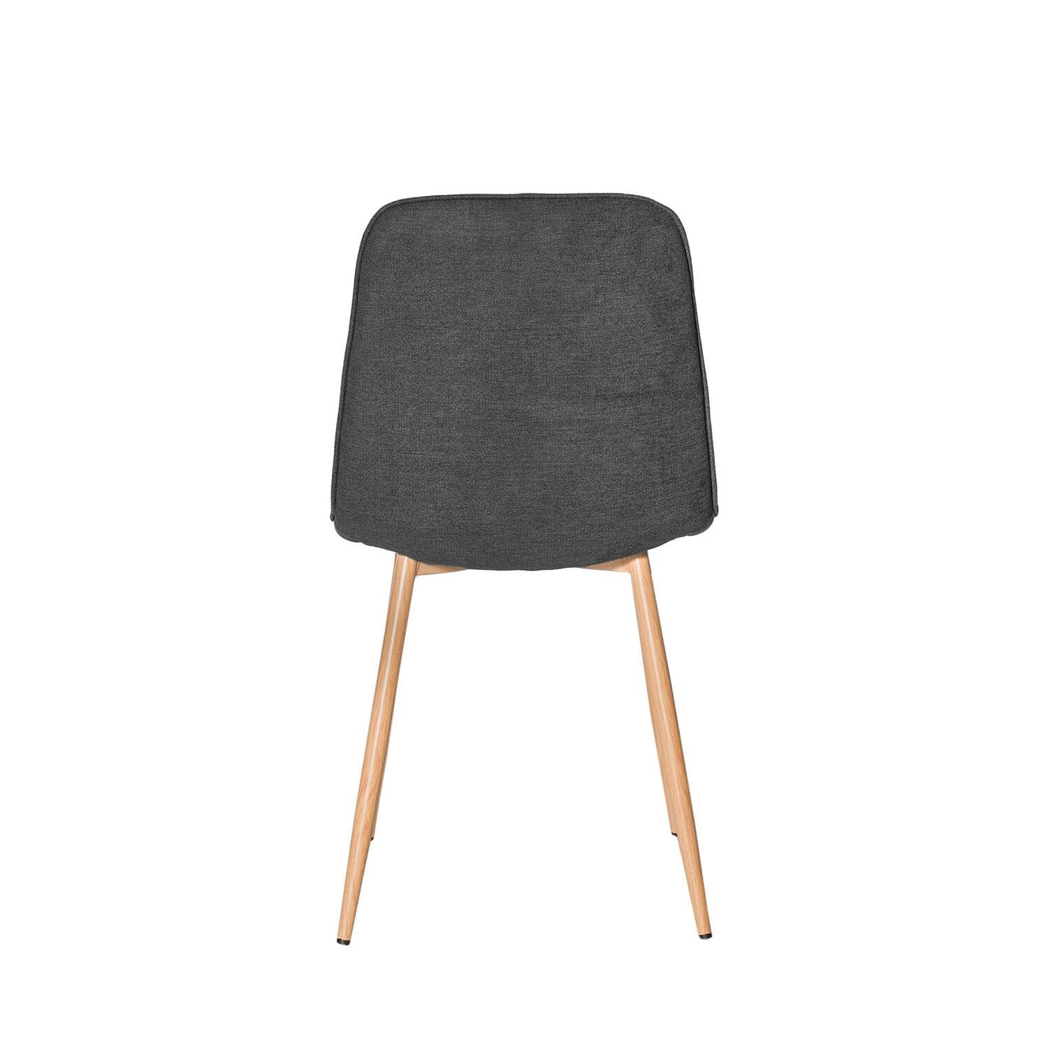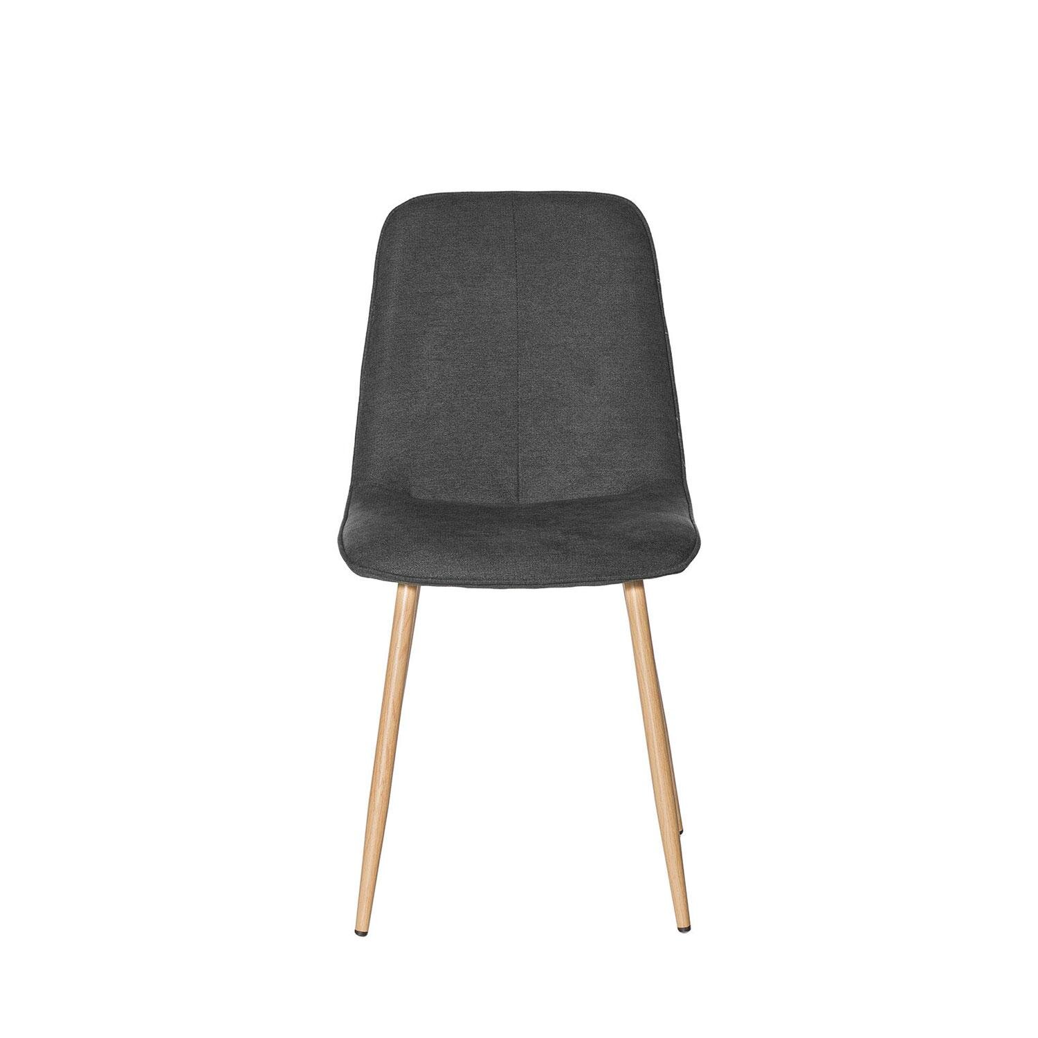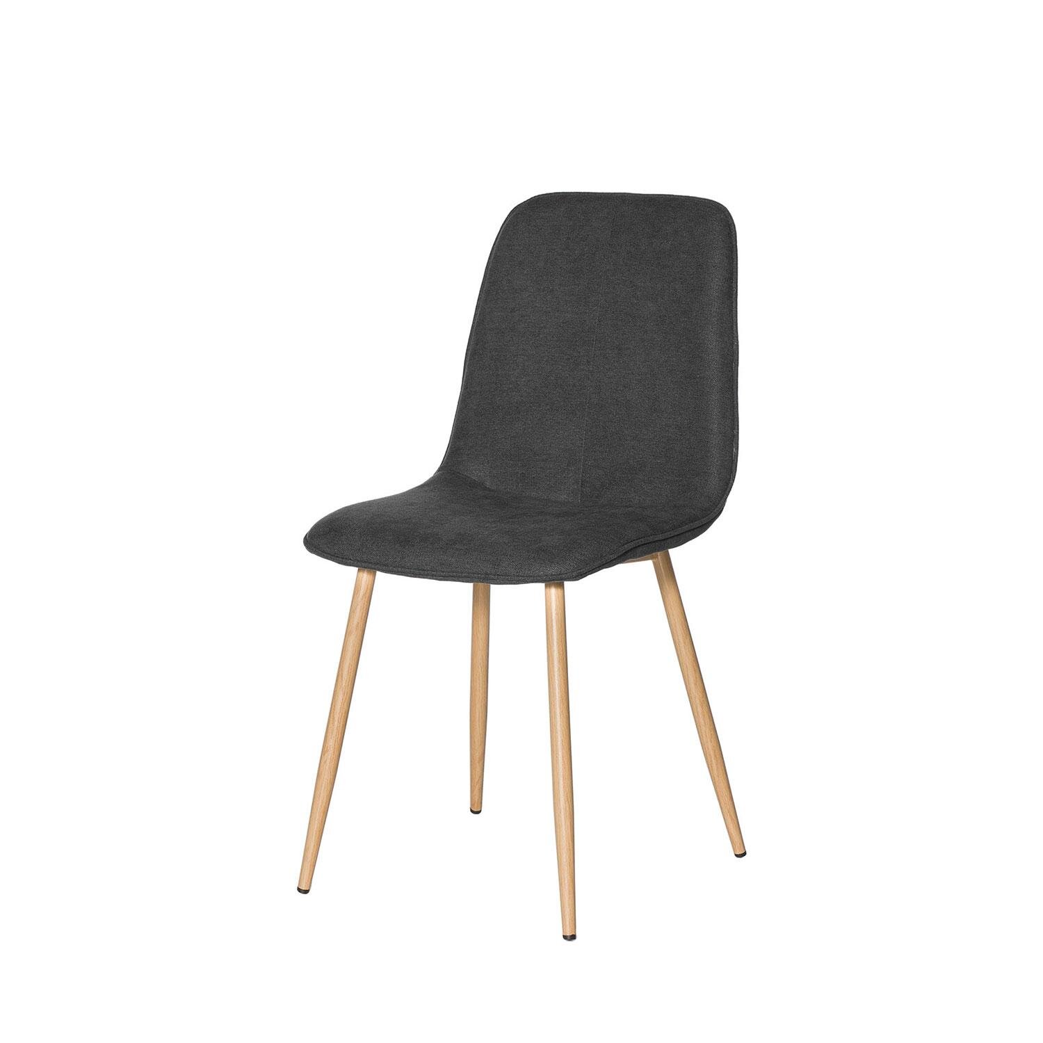 Añade un toque natural y elegante con la silla ILIANA. Tapizada en tejido 100% poliéster de color gris oscuro, su combinación con las patas de metal con efecto madera aporta un aire natural y sofisticado a cualquier estancia. Además, su estructura monobloque de respaldo y asiento acolchado garantiza una comodidad excepcional.