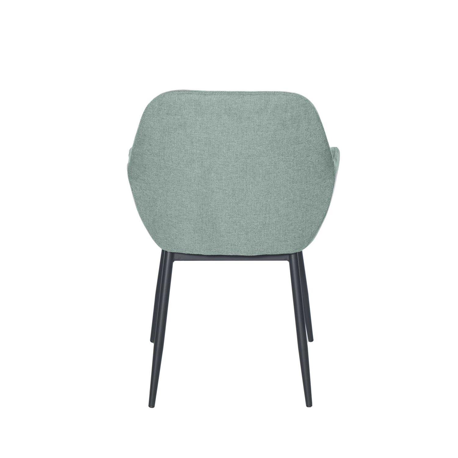 Cómoda silla con respaldo y reposabrazos anchos para garantizar la máxima comodidad y uso prolongado durante horas. La silla ISABELLA destaca por su diseño minimalista, que se integra fácilmente en cualquier ambiente y espacio. Su tejido 100% poliéster en color menta no solo es fácil de limpiar, sino que también aporta un toque de elegancia y modernidad. La estructura de las patas metálicas en color negro complementa perfectamente el tejido, creando una combinación armoniosa y sofisticada.