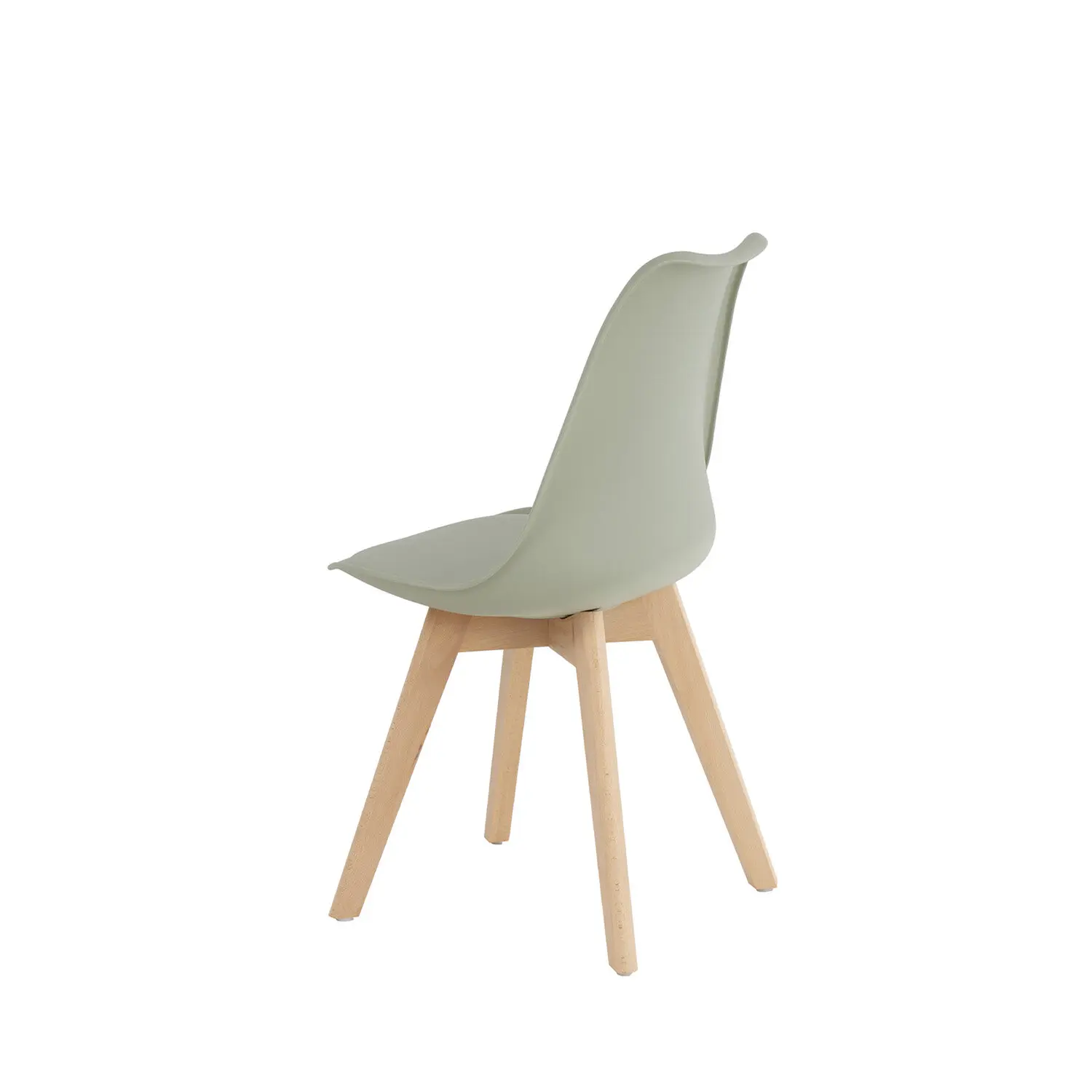 La silla KARINA destaca por su estilo nórdico-moderno, equilibrando simplicidad y sofisticación. El respaldo y asiento de polipropileno, ligeramente curvado, promueve una postura cómoda y ergonómica. Además, el asiento está acolchado con poliuretano para mayor confort. Las patas de madera no solo brindan estabilidad, sino que también aportan un toque de distinción y elegancia al diseño, haciéndola ideal para ambientes contemporáneos o escandinavos.