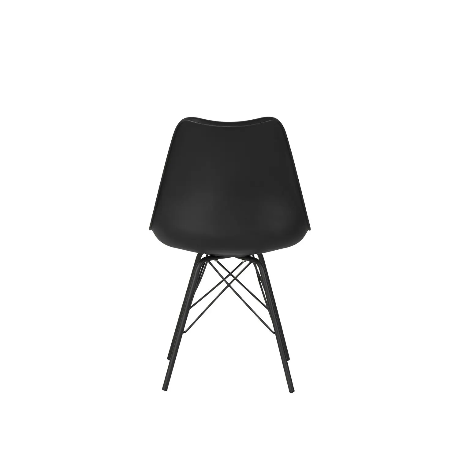 La silla KENDRA combina a la perfección comodidad y estilo, convirtiéndose en la opción ideal para cualquier comedor o sala de estar. El respaldo, fabricado en polipropileno con una ligera curvatura ergonómica, está diseñado para favorecer una postura cómoda y natural. El asiento, acolchado con poliuretano, proporciona un confort extra, haciéndola perfecta para un uso prolongado. Las patas de metal, con una estructura entrecruzada, no solo añaden estabilidad, sino que también realzan el diseño minimalista de la silla.