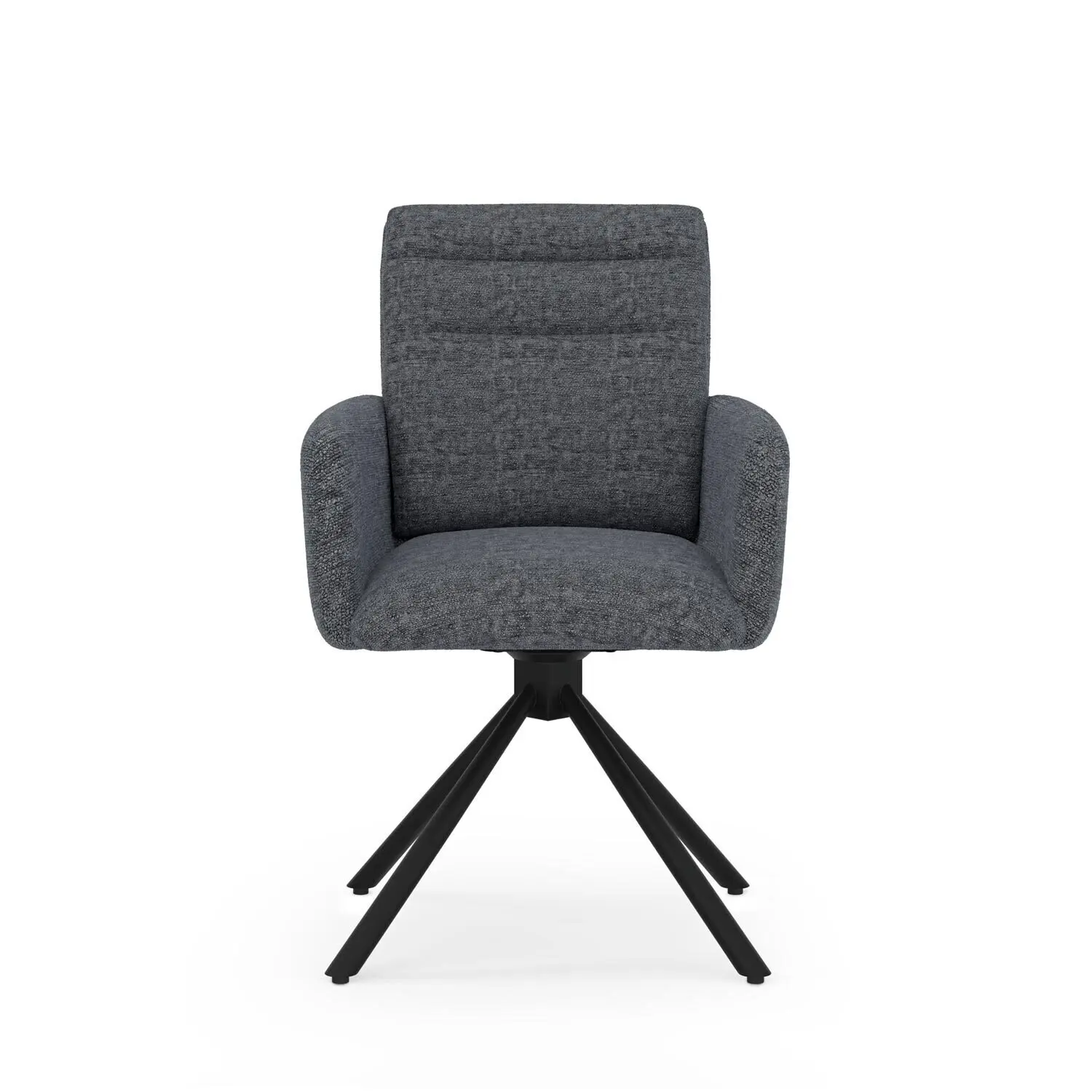 La silla LINDA presenta una estructura de líneas rectas con respaldo y reposabrazos altos, proporcionando un mayor confort gracias a su completo acolchado. El tapizado en chenille es increíblemente suave al tacto, ofreciendo una experiencia de confort única. Su textura captura la luz creando delicadas variaciones de color según la orientación de la trama del hilo. Este modelo es giratorio a 180º y cuenta con un sistema de retorno , lo que hace de la silla LINDA una excelente elección para el uso diario. Además, su base de patas metálicas en color negro no solo añade un toque de estilo, sino que también proporciona una mayor resistencia.