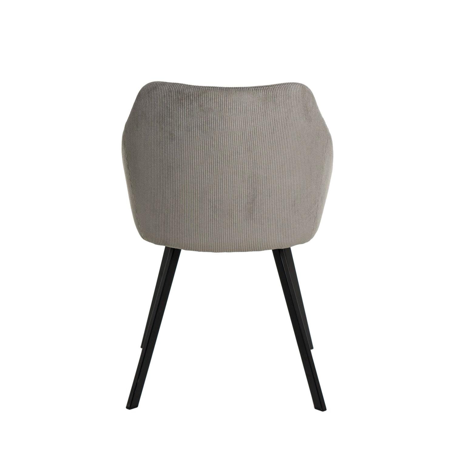 La silla MACIE está tapizada en un suave tejido de pana en color gris claro, es agradable al tacto y fácil de limpiar, lo que la hace perfecta para el uso diario. Su diseño elegante y moderno incluye patas metálicas en color negro, que no solo añaden un toque de sofisticación, sino que también garantizan una gran estabilidad. El respaldo y el asiento curvados están diseñados para proporcionar un confort óptimo, adaptándose a la forma del cuerpo para ofrecer un soporte ergonómico. Ideal para comedores, oficinas o cualquier espacio que busque una combinación de comodidad y estilo, esta silla se integra perfectamente en una variedad de decoraciones interiores.