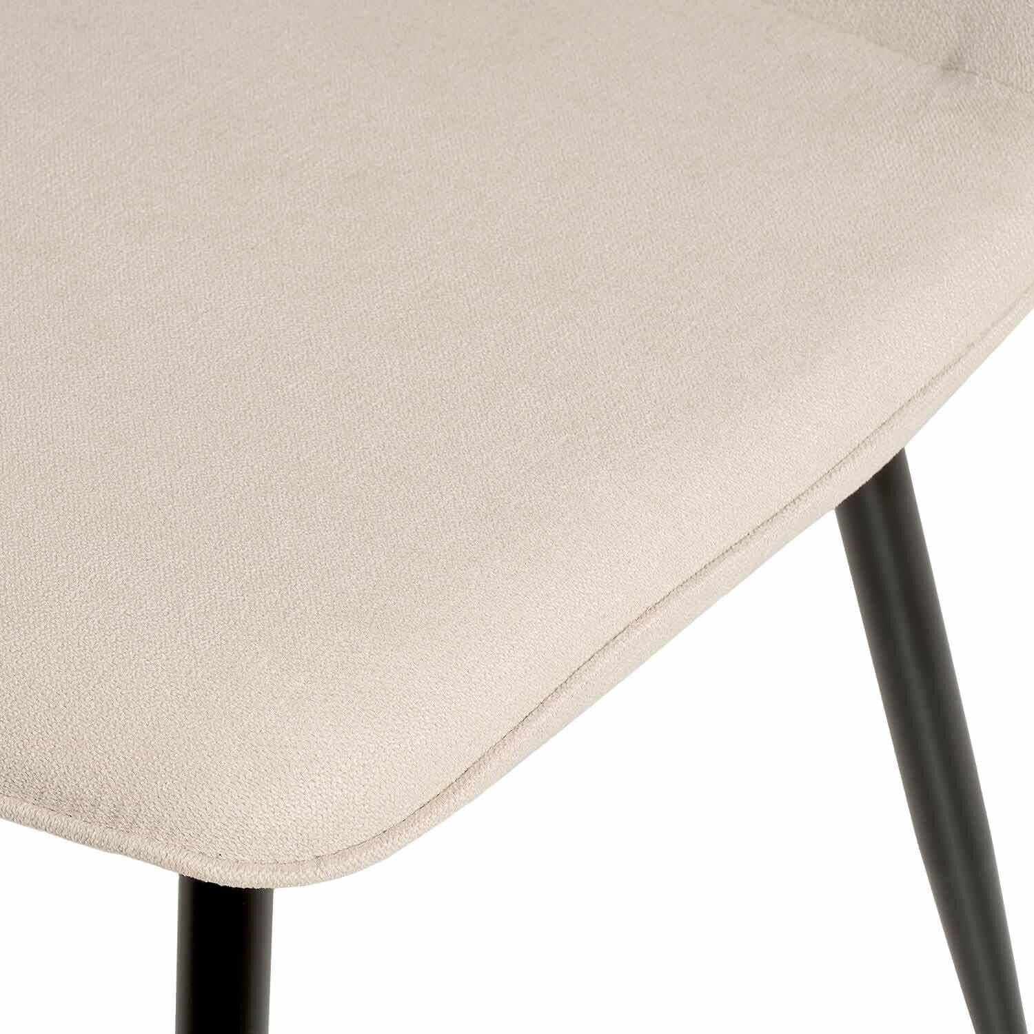 La silla MARLEEN combina elegancia atemporal con un toque moderno. Su diseño, de líneas suavemente curvas, presenta una estructura monobloque que integra asiento y respaldo en una sola pieza. El confort no se queda atrás, gracias al acolchado mullido revestido en un atractivo tejido de tonalidad beige. Sus patas metálicas en negro no solo proporcionan una base sólida y estable, sino que también añaden un contraste visual distintivo, haciendo de la silla MARLEEN una pieza destacada en cualquier ambiente contemporáneo.