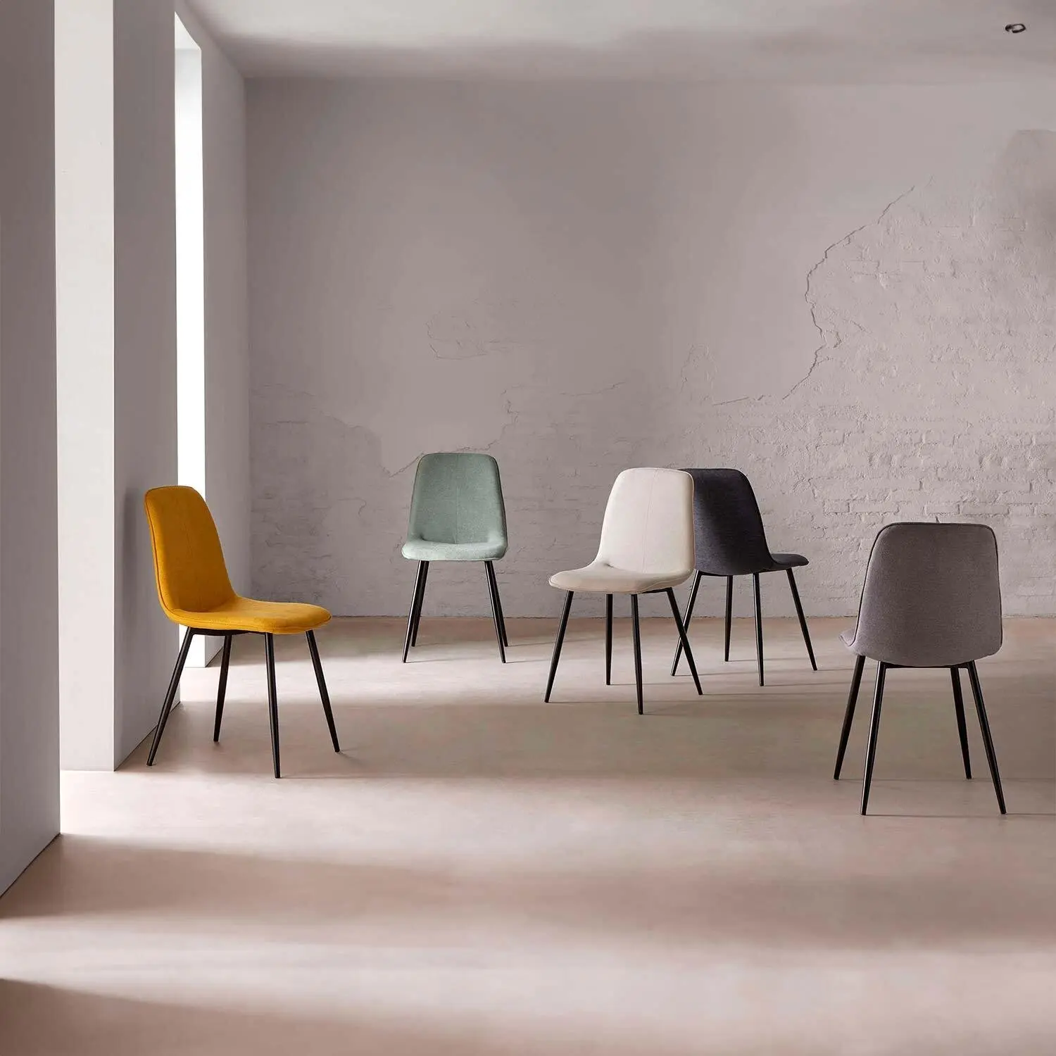 La silla MARLEEN combina elegancia atemporal con un toque moderno. Su diseño, de líneas suavemente curvas, presenta una estructura monobloque que integra asiento y respaldo en una sola pieza. El confort no se queda atrás, gracias al acolchado mullido revestido en un atractivo tejido de tonalidad gris oscuro. Sus patas metálicas en negro no solo proporcionan una base sólida y estable, sino que también añaden un contraste visual distintivo, haciendo de la silla MARLEEN una pieza destacada en cualquier ambiente contemporáneo.