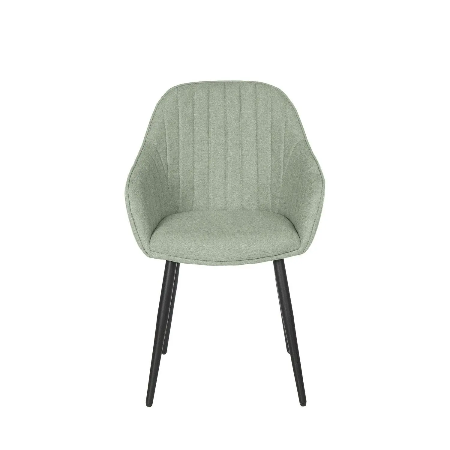 La silla NATALIA combina comodidad y diseño. Su estructura acolchada con reposabrazos y respaldo alto, junto con su tejido en color menta con grabado en líneas verticales, le confiere un estilo elegante y sofisticado. Además, es una silla muy cómoda, ideal para comedores o salas de estar. Sus patas metálicas en color negro proporcionan durabilidad y estabilidad, asegurando una larga vida útil.