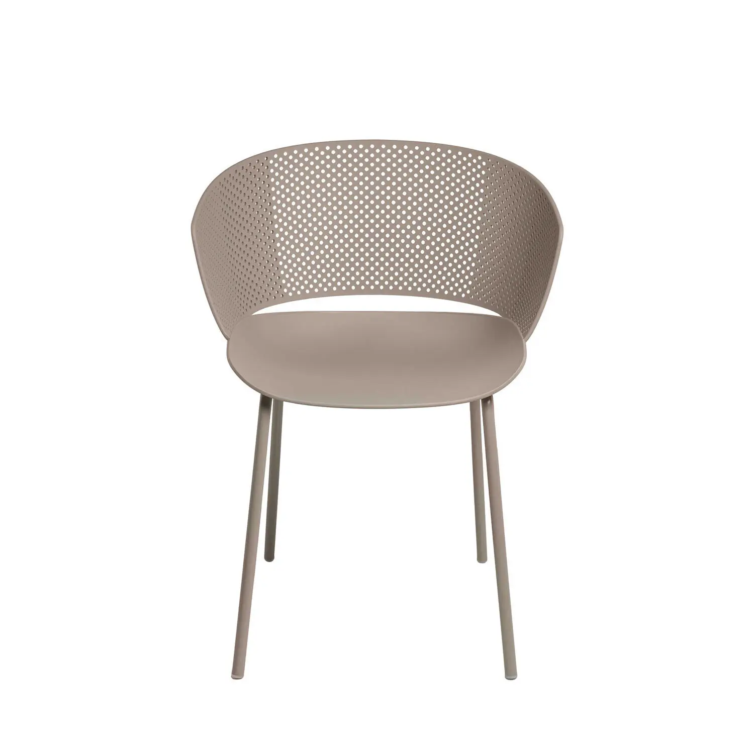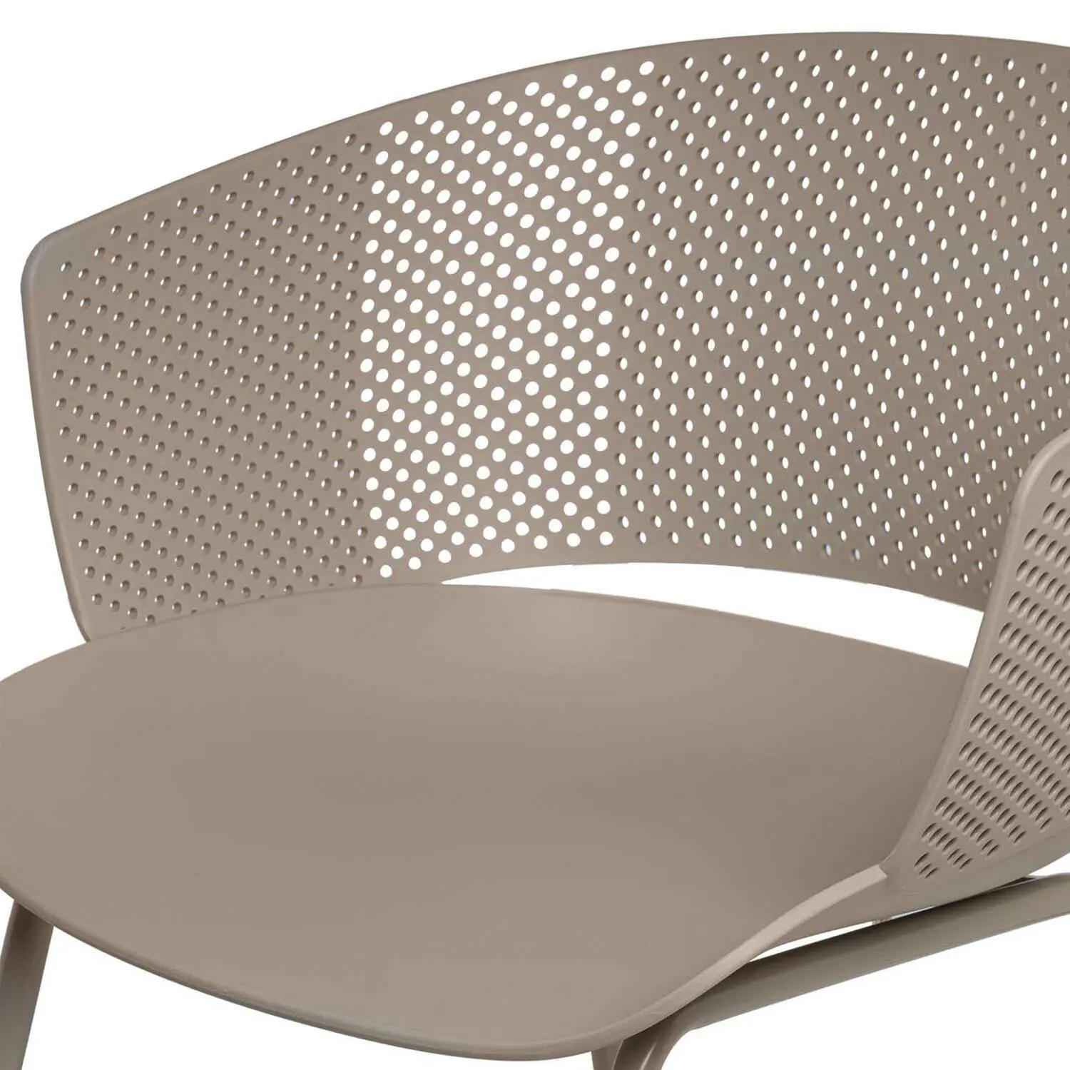 La silla NOELLE combina diseño vanguardista con comodidad. Su respaldo ergonómico, con perforaciones que aportan un toque de estilo, se adapta perfectamente a la curva de la espalda. La estructura de polipropileno y las patas de metal en color beige le proporcionan resistencia y un diseño atemporal.