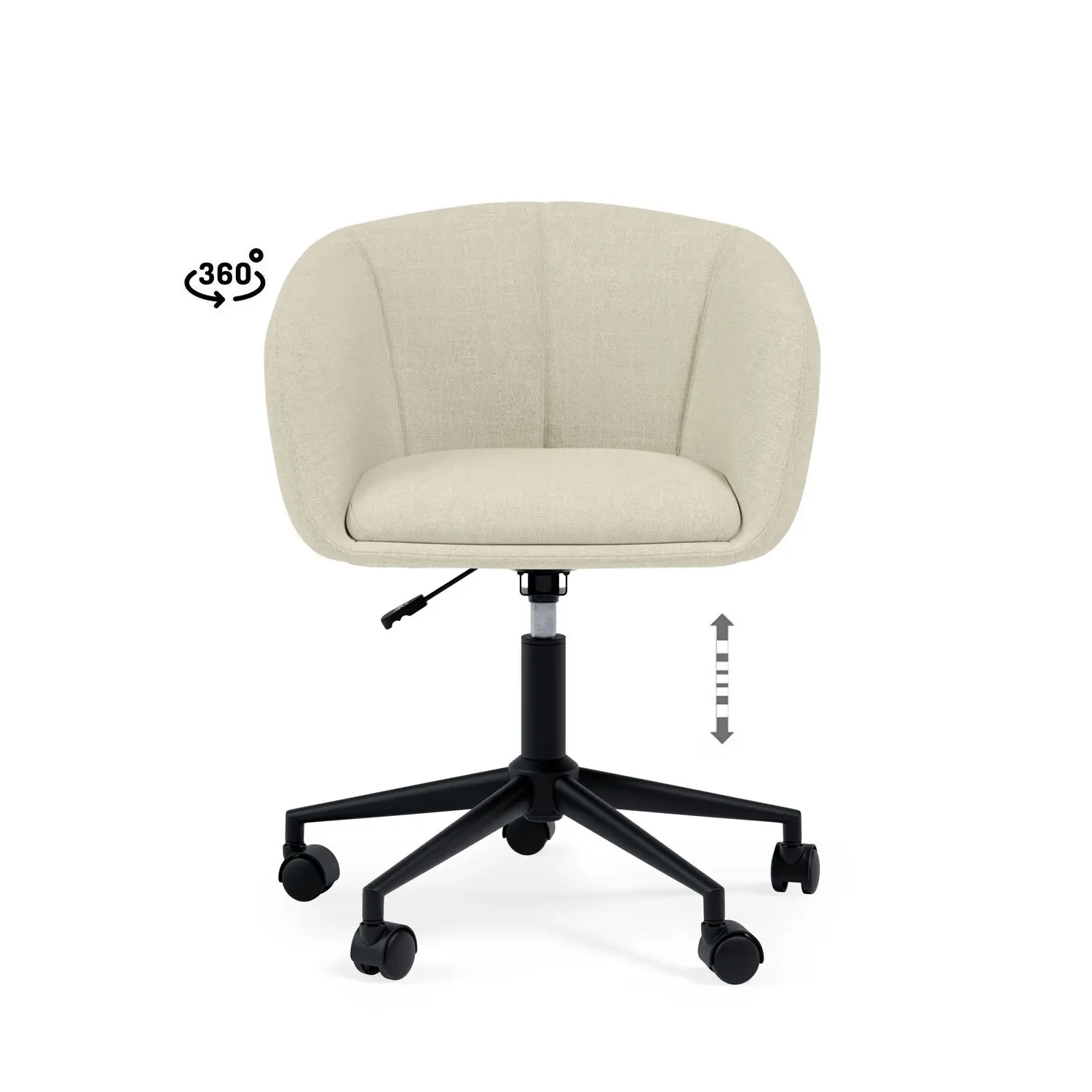 Detalles: DIMENSIONES ARTÍCULO: Ancho total: 64 cm Alto total mínimo: 73 cm Alto total máximo: 81 cm Fondo total: 67 cm Peso: Altura suelo asiento mínimo: 47 cm Altura suelo asiento máximo: 53 cm Altura suelo brazos mínimo: 64 cm Altura suelo brazos máximo: 70 cm Altura respaldo: 34 cm Ancho respaldo: 50 cm Altura brazos: 22 cm Ancho asiento: 42 cm Fondo asiento: 43 cm Medida entre patas (frontal): 43 cm Medida entre patas (trasera): 43 cm Medida entre patas (lateral): 43 cm Advertencia tolerancia: +/- 2 cm | MANTENIMIENTO: Recomendaciones: No colocar cerca de fuentes de calor o luz solar. Es recomendable quitar el polvo de los tapizados. Los elementos afilados o metálicos pueden rayar la superficie o producir desgarros. Uso y mantenimiento: Limpiar con paño ligeramente humedecido en agua y jabón neutro con movimientos en círculo. Frotar suavemente. Secar con paño seco. No utilizar productos abrasivos o químicos (lejías, acetonas, disolventes, etc.). Se puede utilizar ligeramente agua y jabón neutro para superficie | PAQUETES: Nº paquetes: 1 Artículos por paquetes: 1 Dimensión paquete: 62 x 56 x 62 cm Peso paquete: 13 kg Manipulación: 1 persona | CARACTERÍSTICAS: Tejido: PEARL/BEIGE Apilable: NO Giratorio: SÍ (360º) Requiere montaje: SÍ Peso soportado: 120 kg Código del producto: 00OF101025 Las imágenes y/o colores de los productos pueden variar ligeramente por motivos de calibrado de pantalla, luz ambiente de la fotografía, ángulo de la misma, remesa producción madera, textil, etc.