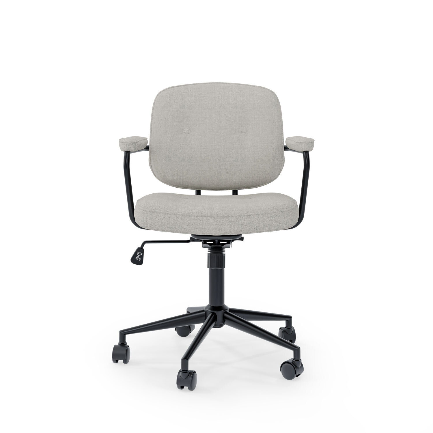 Detalles: Ancho total: 61 cm | Alto total mínimo: 89 cm | Alto total máximo: 92 cm | Fondo total: 63 cm | Altura suelo asiento mínimo: 48 cm | Altura suelo asiento máximo: 55 cm | Altura suelo brazo mínimo: 68 cm | Altura suelo brazo máximo: 75 cm | Altura respaldo mínimo: 37 cm | Altura respaldo máximo: 41 cm | Ancho respaldo: 43,5 cm | Altura asiento brazos: 20 cm | Ancho brazos: 7 cm | Ancho asiento: 48 cm | Fondo asiento: 43 cm | Medida entre patas (frontal): 39 cm | Medida entre patas (trasera): 39 cm | Medida entre patas (lateral): 39 cm | Advertencia tolerancia: +/- 2 cm | Nº paquetes: 1 | Artículos por paquetes: 1 | Dimensión paquete: 60 x 32 x 56 cm | Peso paquete: 12 kg | Manipulación: 1 persona | Tejido: PEARL/GRIS CLARO | Apilable: NO | Giratorio: SÍ (360º) | Requiere montaje: SÍ | Peso soportado: 120 kg | Código del producto: 00OF100221 | Las imágenes y/o colores de los productos pueden variar ligeramente por motivos de calibrado de pantalla, luz ambiente de la fotografía, ángulo de la misma, remesa producción madera, textil, etc. | Recomendaciones: | Uso y mantenimiento: