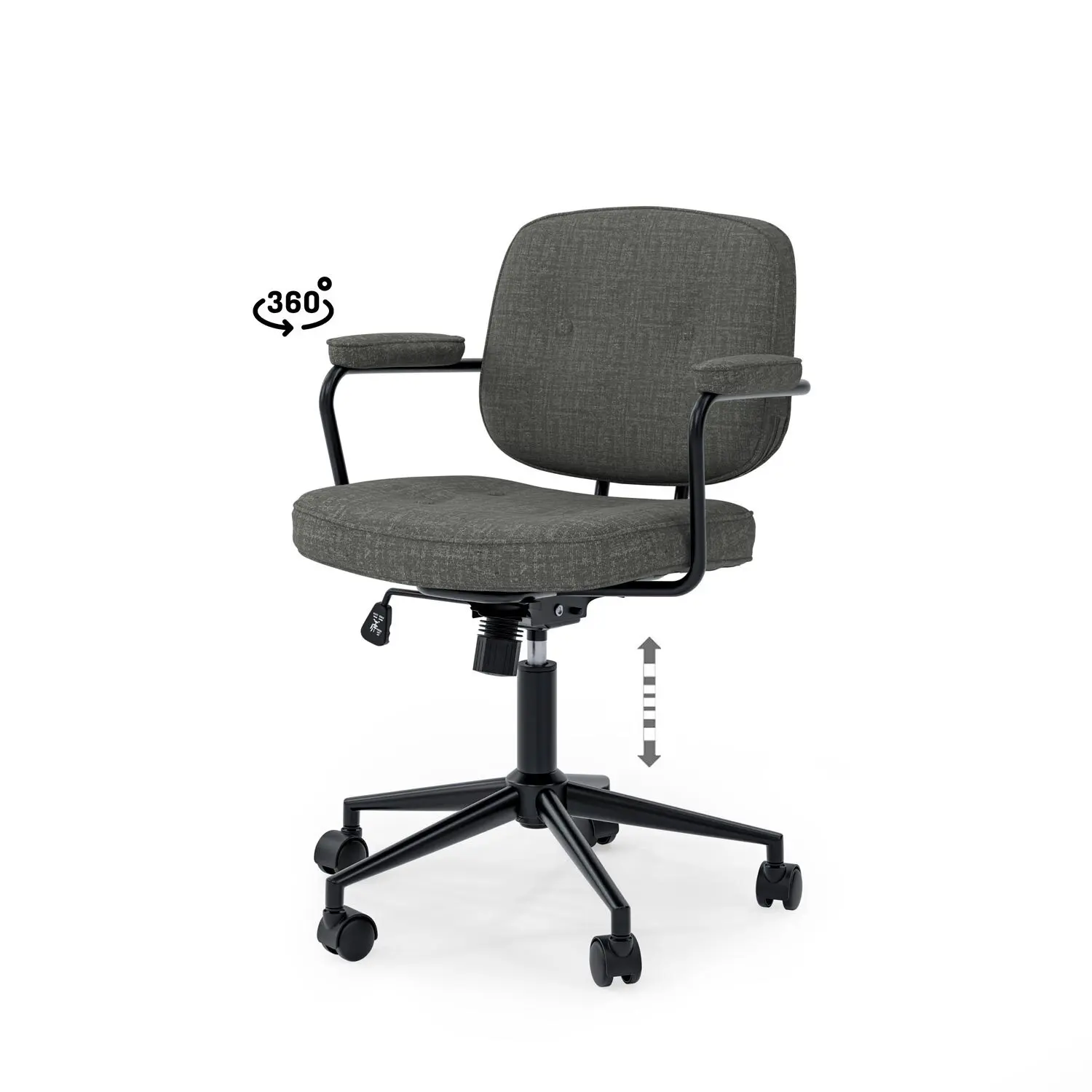 La silla de oficina COLUMBIA combina a la perfección un diseño retro con funcionalidades modernas, siendo una elección destacada para añadir carácter y practicidad a cualquier espacio de trabajo. Su diseño ergonómico está pensado para adaptarse al contorno natural del cuerpo, ofreciendo un soporte óptimo durante largas jornadas laborales. La estructura metálica en color negro no solo aporta un toque elegante y sofisticado, sino que también garantiza la robustez y durabilidad del producto. Los brazos acolchados añaden un nivel extra de comodidad, permitiendo un soporte adecuado para reducir la fatiga. Equipada con un mecanismo de ajuste de altura (tanto en los pies como en el respaldo), esta silla permite personalizar la posición según las necesidades del usuario. Asimismo, cuenta con ruedas de 360º, que facilitan un movimiento fluido y dinámico en cualquier entorno.