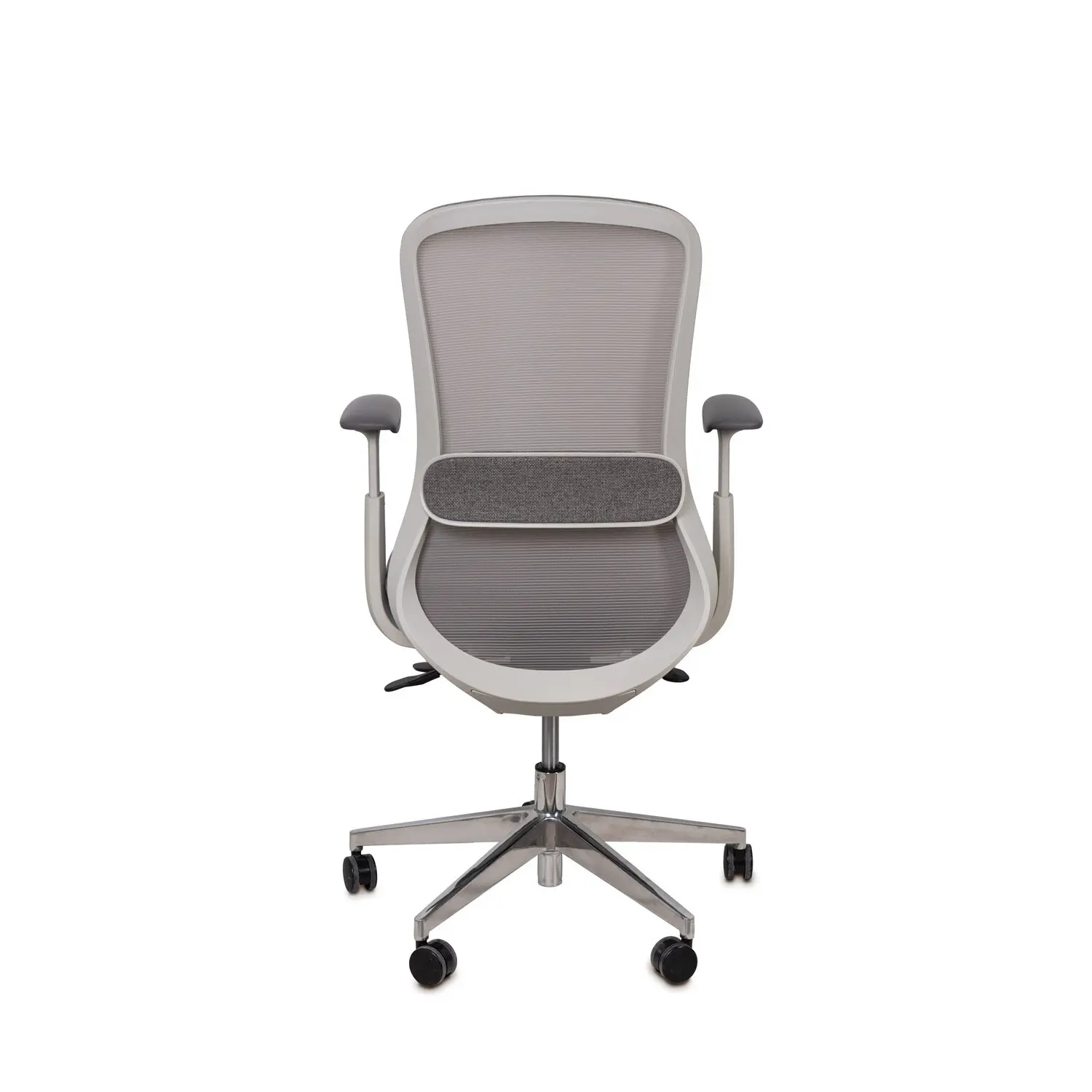 La silla de oficina EMORY combina un diseño profesional y elegante con características pensadas para mejorar la experiencia laboral, ya sea en la oficina o desde casa. Su estructura ergonómica y apoyos superiores están diseñados para ofrecer comodidad y soporte durante el uso diario, promoviendo una postura saludable. El tapizado del asiento y el apoyo lumbar presentan un acabado uniforme que aporta un toque sofisticado, armonizando perfectamente con los tonos grises y metálicos de su estructura. El respaldo, fabricado en tela de malla transpirable, favorece la circulación del aire para evitar la acumulación de calor, lo que garantiza un mayor confort y ayuda a reducir la fatiga incluso en jornadas prolongadas. Destacamos las siguientes funcionalidades: Giro de 360°: Facilita un acceso ágil y práctico a diversas áreas del espacio de trabajo. Brazos 4D: Brazos regulables en sentido horizontal hacia afuera, en altura y desplazamiento del reposabrazos en 2 ejes. Soporte lumbar: Apoyo lumb