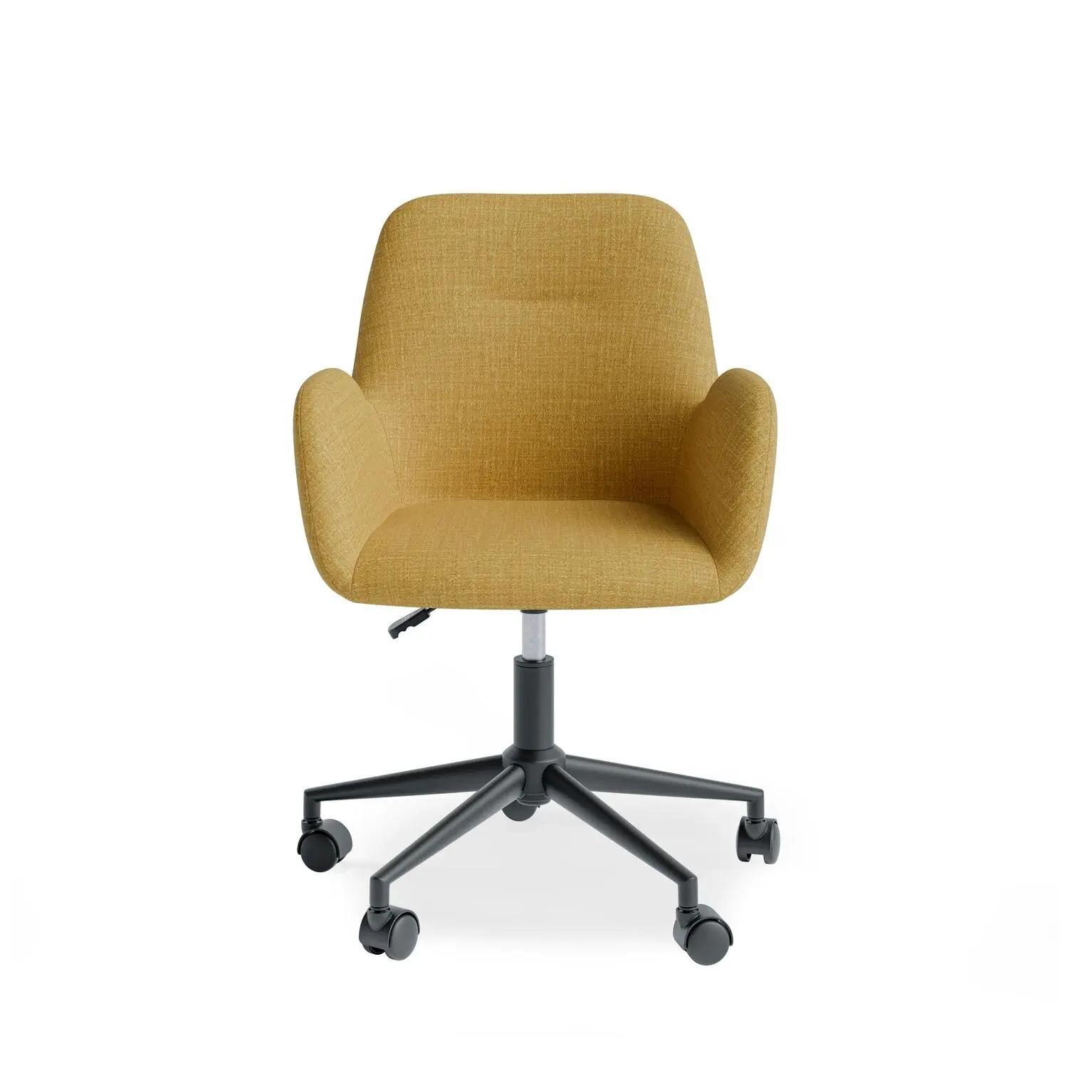 Detalles: PAQUETES: Nº paquetes: 1 Artículos por paquetes: 1 Dimensión paquete: 57 x 58 x 58 cm Peso paquete: 10 kg Manipulación: 1 persona | CARACTERÍSTICAS: Tejido: PEARL/MOSTAZA Apilable: NO Giratorio: SÍ (360º) Requiere montaje: SÍ Peso soportado: 120 kg Código del producto: 00OF100327 Las imágenes y/o colores de los productos pueden variar ligeramente por motivos de calibrado de pantalla, luz ambiente de la fotografía, ángulo de la misma, remesa producción madera, textil, etc. | MANTENIMIENTO: Recomendaciones: No colocar cerca de fuentes de calor o luz solar. Es recomendable quitar el polvo de los tapizados. Los elementos afilados o metálicos pueden rayar la superficie o producir desgarros. Uso y mantenimiento: Limpiar con paño ligeramente humedecido en agua y jabón neutro con movimientos en círculo. Frotar suavemente. Secar con paño seco. No utilizar productos abrasivos o químicos (lejías, acetonas, disolventes, etc.). Se puede utilizar ligeramente agua y jabón neutro para superficie | DIMENSIONES ARTÍCULO: Ancho total: 65 cm Alto total mínimo: 81 cm Alto total máximo: 88 cm Fondo total: 60 cm Altura suelo asiento mínimo: 45 cm Altura suelo asiento máximo: 52 cm Altura suelo brazos mínimo: 62 cm Altura suelo brazos máximo: 69 cm Altura respaldo: 43 cm Ancho respaldo: 49 cm Altura brazos: 22 cm Ancho asiento: 40 cm Fondo asiento: 44 cm Medida entre patas (frontal): 46 cm Medida entre patas (trasera): 46 cm Medida entre patas (lateral): 46 cm Advertencia tolerancia: +/- 2 cm