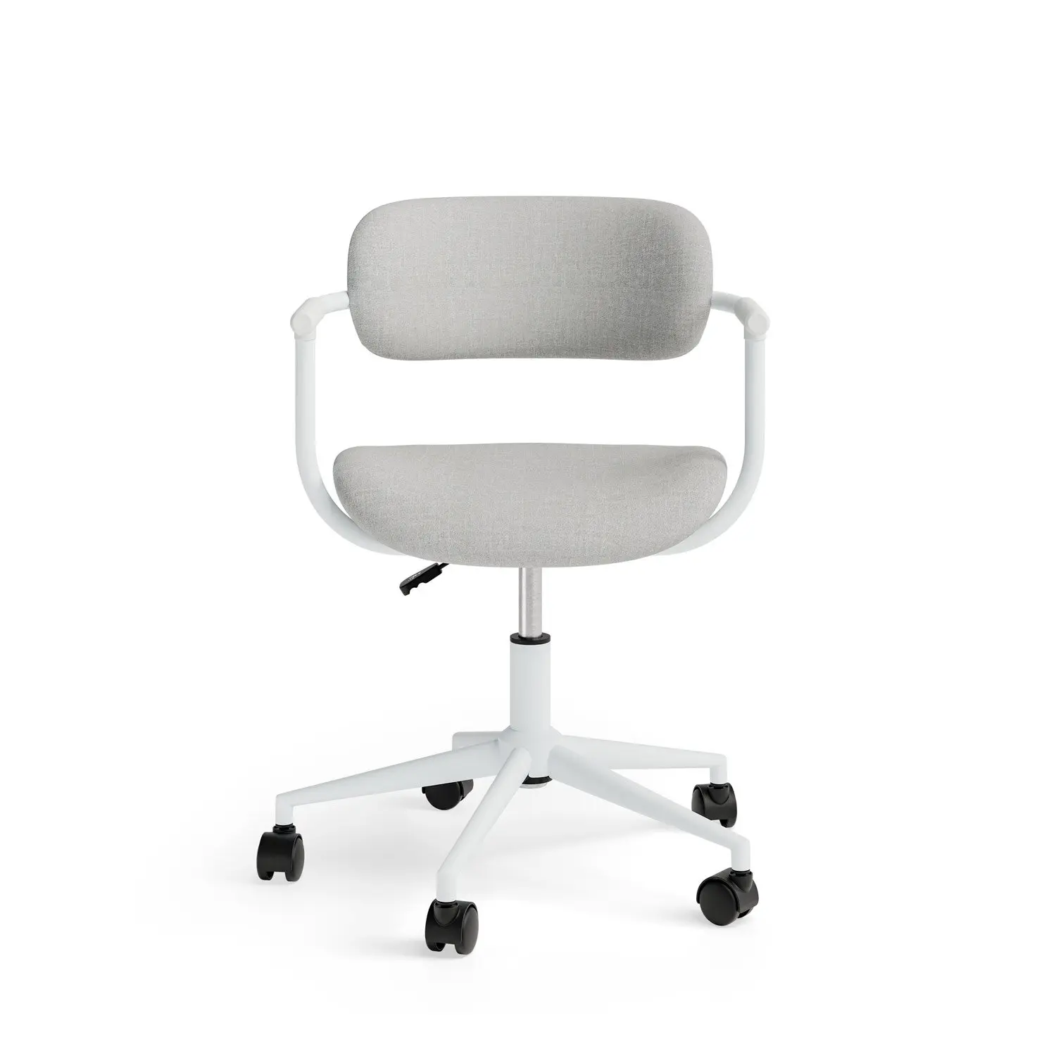 Minimalismo y comodidad se fusionan en la silla de oficina OXFORD, una propuesta moderna y funcional que destaca por su diseño ligero y elegante, ideal para espacios de trabajo que buscan estilo y practicidad. Su estructura minimalista en color blanco se complementa con un tapizado disponible en gris, mostaza o menta, colores que aportan una estética limpia, contemporánea y adaptable a diferentes estilos de decoración. Su forma curvilínea está diseñada para ajustarse de manera natural a la espalda, ofreciendo un soporte ergonómico que prioriza la comodidad durante largas horas de uso. Equipada con un mecanismo de giro 360º y un sistema de ajuste de altura mediante pistón de gas, la silla OXFORD se adapta fácilmente a las necesidades y preferencias de cada usuario, garantizando funcionalidad y versatilidad en cualquier entorno.