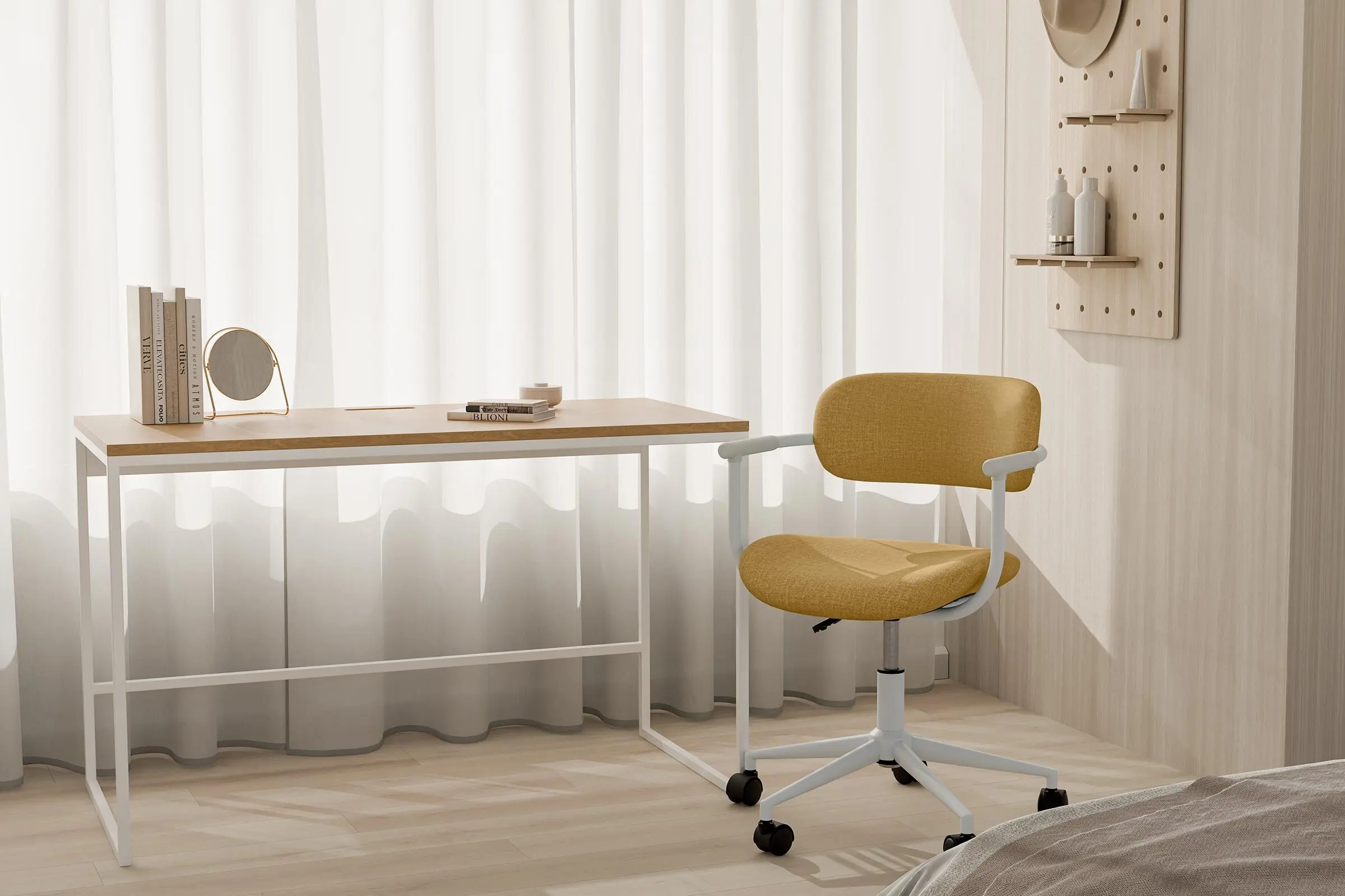 Minimalismo y comodidad se fusionan en la silla de oficina OXFORD, una propuesta moderna y funcional que destaca por su diseño ligero y elegante, ideal para espacios de trabajo que buscan estilo y practicidad. Su estructura minimalista en color blanco se complementa con un tapizado disponible en gris, mostaza o menta, colores que aportan una estética limpia, contemporánea y adaptable a diferentes estilos de decoración. Su forma curvilínea está diseñada para ajustarse de manera natural a la espalda, ofreciendo un soporte ergonómico que prioriza la comodidad durante largas horas de uso. Equipada con un mecanismo de giro 360º y un sistema de ajuste de altura mediante pistón de gas, la silla OXFORD se adapta fácilmente a las necesidades y preferencias de cada usuario, garantizando funcionalidad y versatilidad en cualquier entorno.