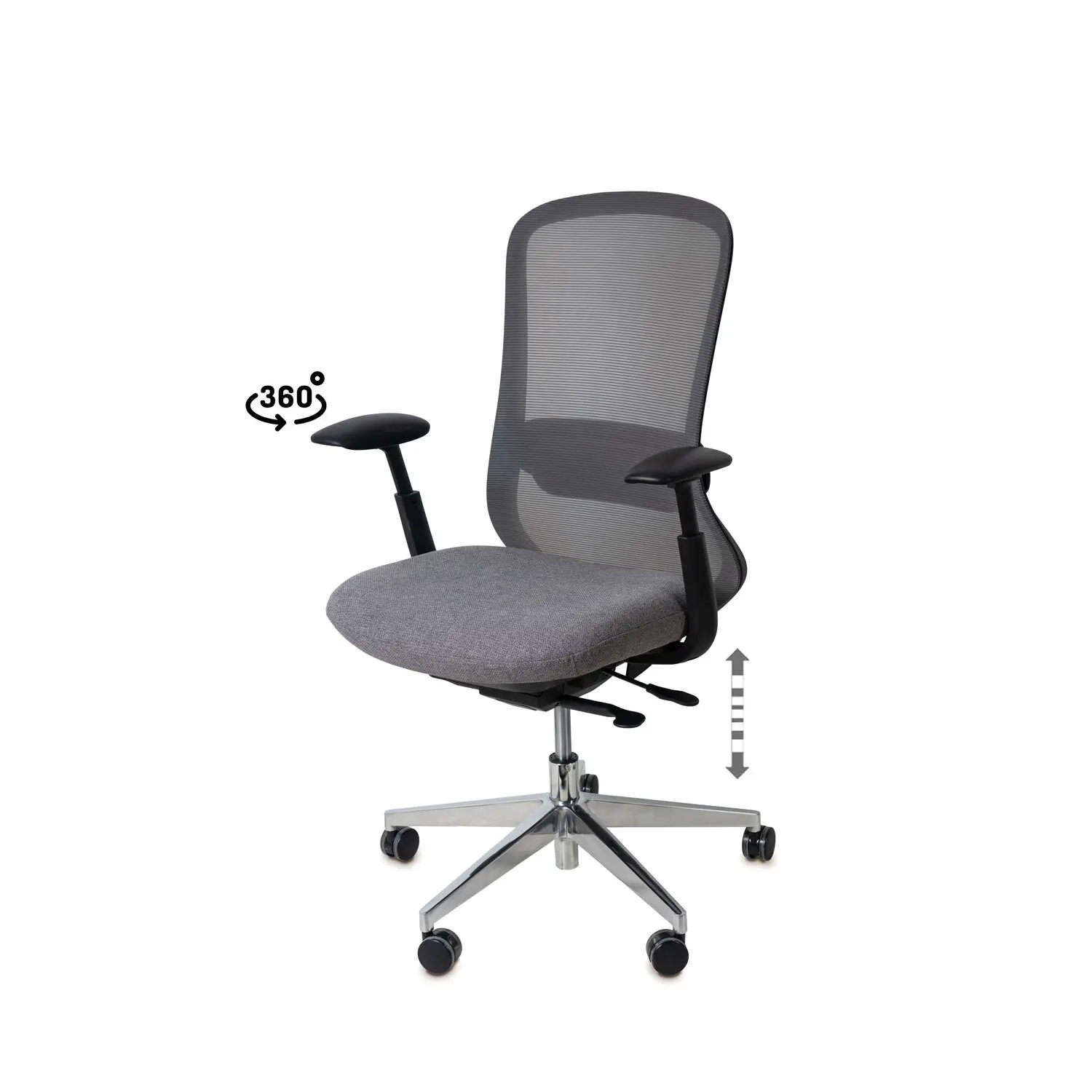 La silla de oficina ROTTERDAM destaca por su diseño moderno y funcional, pensado para optimizar la experiencia laboral, tanto en entornos de oficina como en el hogar. Su estructura ergonómica y sus características avanzadas están concebidas para brindar soporte y comodidad durante largas jornadas de trabajo, promoviendo una postura saludable. El asiento y el soporte lumbar están tapizados con un acabado uniforme, que no solo añade un toque refinado, sino que también combina armoniosamente con los tonos metálicos y negros de la estructura. El respaldo, fabricado en malla transpirable, facilita la circulación del aire, evitando la acumulación de calor y garantizando un confort duradero incluso durante sesiones prolongadas de uso. Entre sus principales características , se incluyen: Rotación de 360°: Permite moverse con facilidad y acceder a diferentes áreas del espacio de trabajo sin esfuerzo. Brazos ajustables 4D: Regulación en altura, desplazamiento horizontal, lateral y hacia adelante