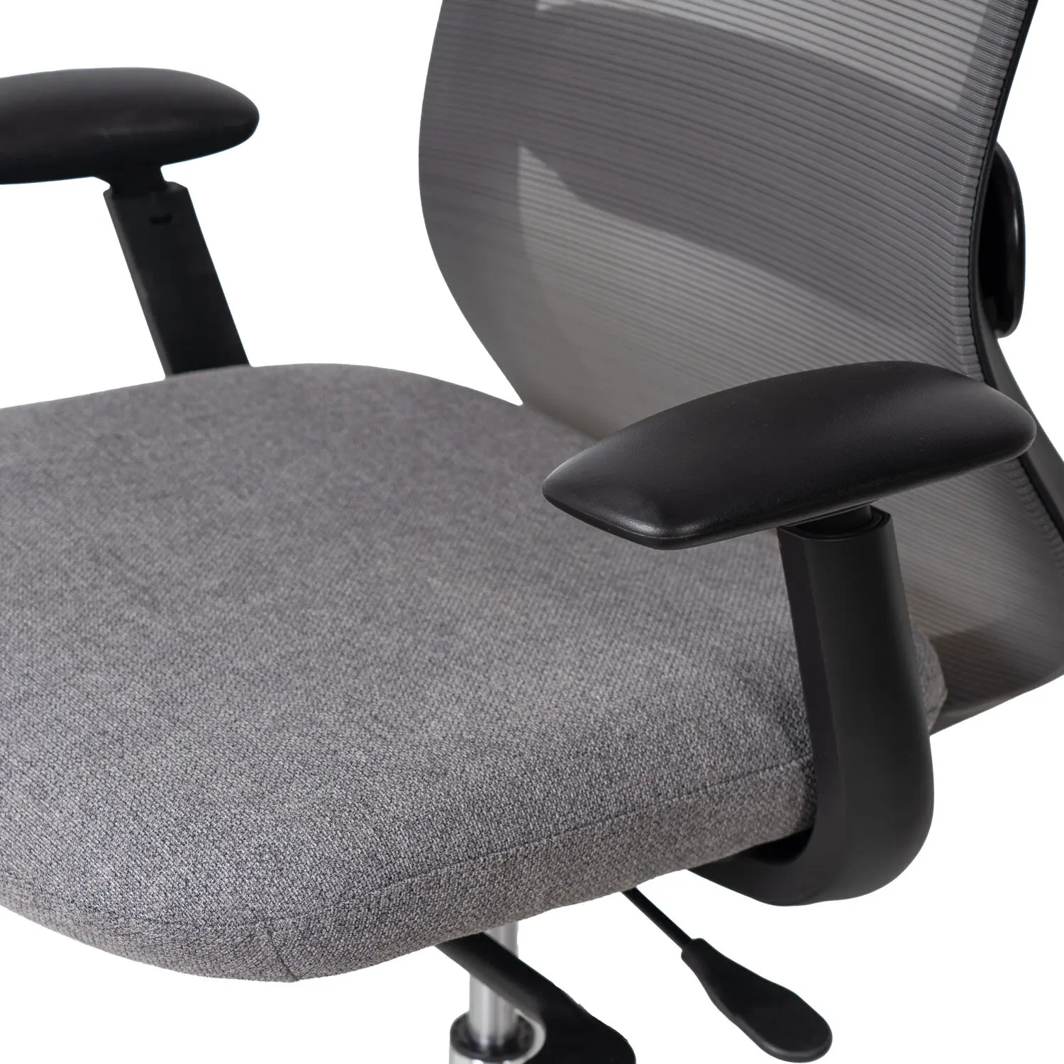 Detalles: DIMENSIONES ARTÍCULO: Ancho total: 67 cm Alto total mínimo: 105 cm Alto total máximo: 115,5 cm Fondo total: 66,5 cm Peso: 20 kg Altura suelo asiento mínimo: 49 cm Altura suelo asiento máximo: 59 cm Altura suelo brazos mínimo: 74 cm Altura suelo brazos máximo: 80 cm Altura respaldo: 65 cm Ancho respaldo: 42 cm Altura brazos mínimo: 18 cm Altura brazos máximo: 25 cm Ancho asiento: 52 cm Fondo asiento: 50 cm Medida entre patas (frontal): 45 cm Medida entre patas (trasera): 45 cm Medida entre patas (lateral): 45 cm Adver | PAQUETES: Nº paquetes: 1 Artículos por paquetes: 1 Dimensión paquete: 76 x 35 x 65 cm Peso paquete: 22 kg Manipulación: 1 persona | CARACTERÍSTICAS: Tejido: OLENA/GRIS Apilable: NO Giratorio: SÍ (360º) Palanca bloqueo respaldo: SÍ Requiere montaje: SÍ Peso soportado: 150 kg Código del producto: 00OF102121 Certificado de calidad: BIFMA EN1335 Las imágenes y/o colores de los productos pueden variar ligeramente por motivos de calibrado de pantalla, luz ambiente de la fotografía, ángulo de la misma, remesa producción madera, textil, etc. | MANTENIMIENTO: Recomendaciones: No colocar cerca de fuentes de calor o luz solar. Es recomendable quitar el polvo de los tapizados. Los elementos afilados o metálicos pueden rayar la superficie o producir desgarros. Uso y mantenimiento: Limpiar con paño ligeramente humedecido en agua y jabón neutro con movimientos en círculo. Frotar suavemente. Secar con paño seco. No utilizar productos abrasivos o químicos (lejías, acetonas, disolventes, etc.). Se puede utilizar ligeramente agua y jabón neutro para superficie
