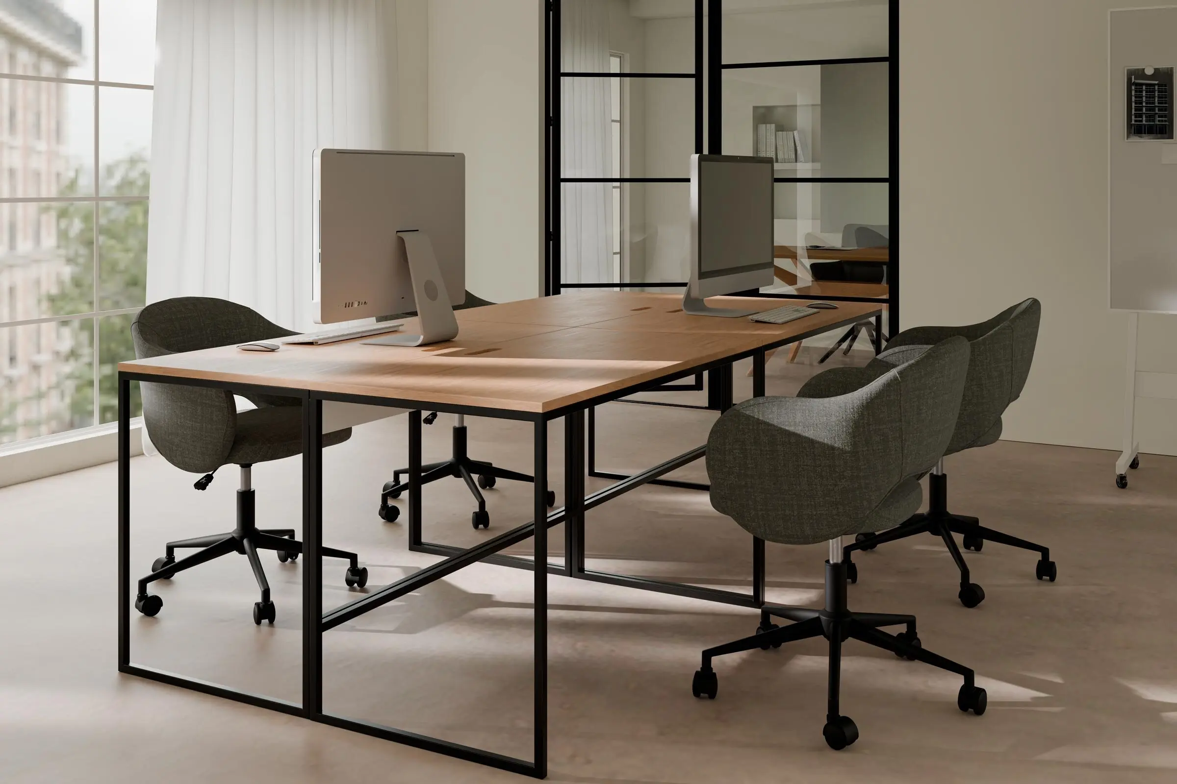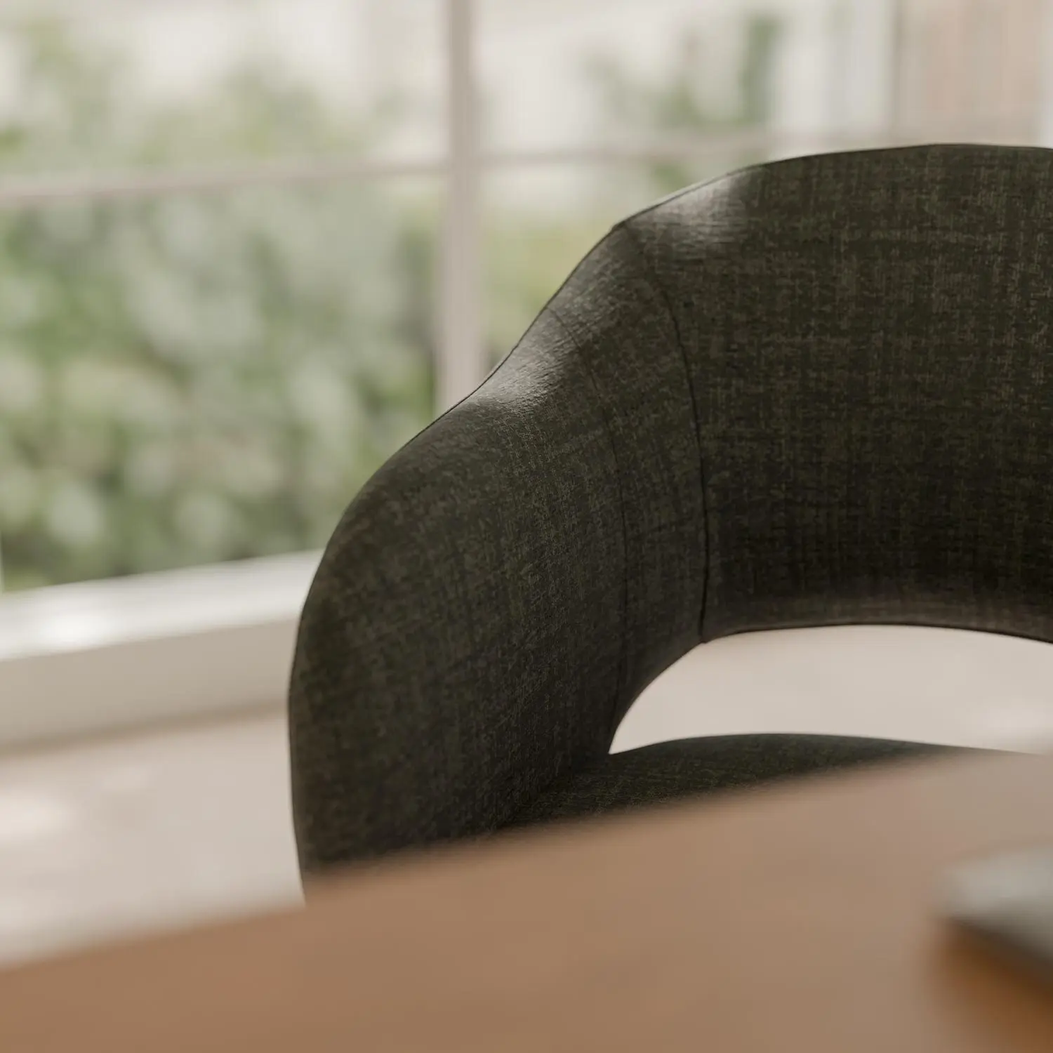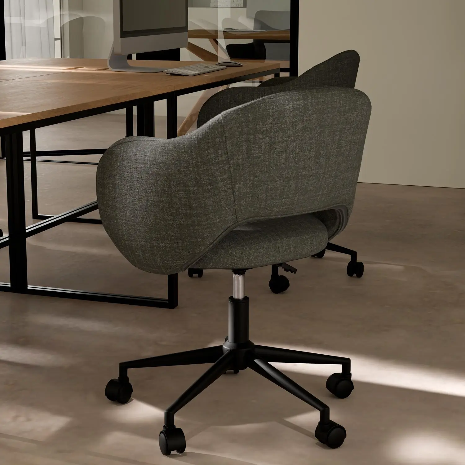 La silla de oficina TALLIN se distingue por su diseño contemporáneo y sofisticado, convirtiéndose en un elemento funcional y estético para cualquier espacio de trabajo o estudio. Su respaldo envolvente con apoyabrazos integrados está diseñado para proporcionar un soporte ergonómico, promoviendo una postura saludable y reduciendo la fatiga durante largas jornadas. El diseño abierto en la parte inferior del respaldo añade un toque de modernidad y originalidad, destacándose como una pieza única en su categoría. Construida sobre una estructura metálica robusta, la silla TALLIN cuenta con ruedas giratorias de 360º que ofrecen una movilidad fluida, ideal para entornos dinámicos. Además, su sistema de ajuste de altura mediante pistón de gas permite adaptarla fácilmente a diferentes escritorios o preferencias personales, garantizando una experiencia personalizada y cómoda.