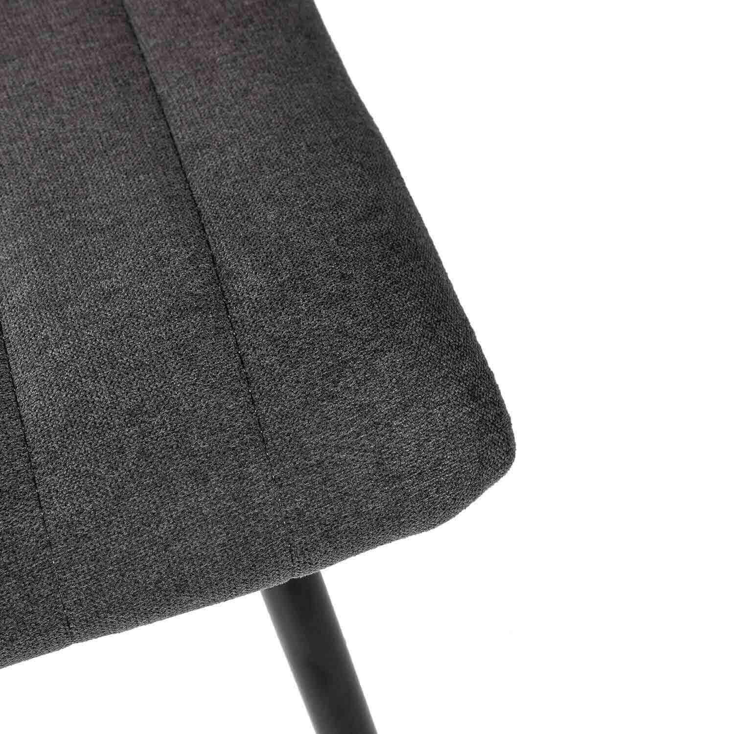 Silla metálica de diseño minimalista y elegante. El asiento y el respaldo están acolchados y presentan un tapizado en tela gris oscuro con costuras verticales que crean una textura acanalada, añadiendo tanto comodidad como interés visual. El respaldo ligeramente inclinado y el asiento acolchado aseguran una postura cómoda durante largas comidas o reuniones. Las patas metálicas cónicas negras proporcionan un contraste elegante con el color del tapizado, además de garantizar estabilidad y durabilidad. La silla XENA es perfecta para comedores contemporáneos, pero su diseño atemporal permite que se integre bien en oficinas, salas de estar o incluso en espacios comerciales.