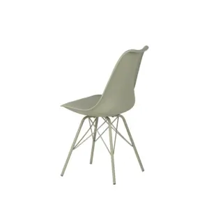 Silla metálica de diseño minimalista y elegante. El asiento y el respaldo están acolchados y presentan un tapizado en tela taupe con costuras verticales que crean una textura acanalada, añadiendo tanto comodidad como interés visual. El respaldo ligeramente inclinado y el asiento acolchado aseguran una postura cómoda durante largas comidas o reuniones. Las patas metálicas cónicas negras proporcionan un contraste elegante con el color claro del tapizado, además de garantizar estabilidad y durabilidad. La silla XENA es perfecta para comedores contemporáneos, pero su diseño atemporal permite que se integre bien en oficinas, salas de estar o incluso en espacios comerciales.