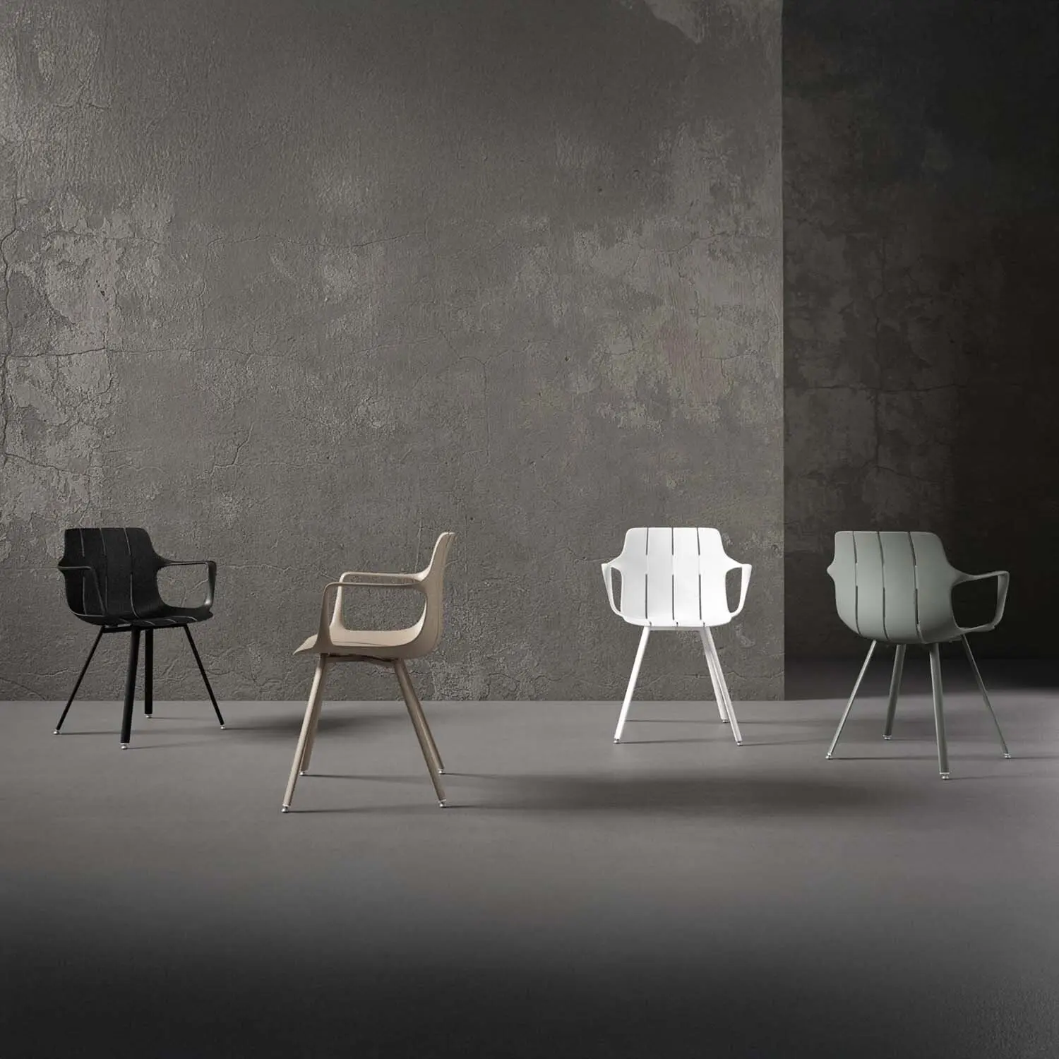 La silla YAMAL está formada por un asiento, respaldo y brazos moldeados en una única pieza de polipropileno, ofreciendo un soporte ergonómico que se adapta a la perfección al cuerpo. Las patas metálicas completan su diseño minimalista y moderno, ideal para cualquier espacio.