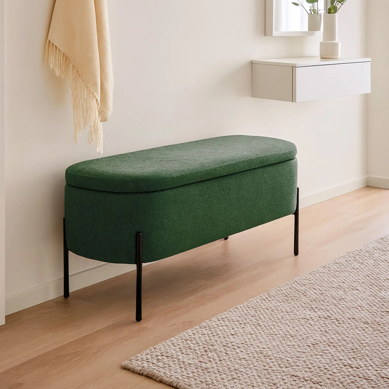 PIE DE CAMA TAPIZADO VERDE