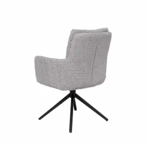 Sillón, tapizado textil de poliéster 100% en color piedra claro, con pespunte decorativo. Patas metálicas en acabado negro mate. Asiento y respaldo de madera contrachapada y espuma. Limpieza en seco.