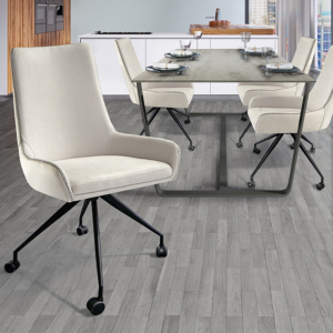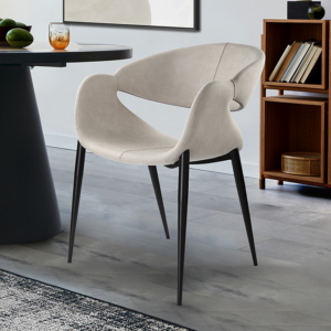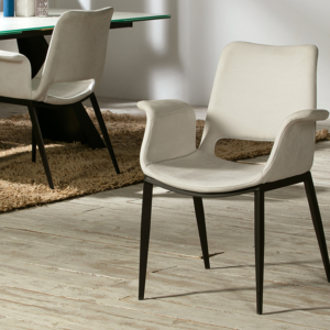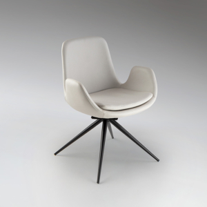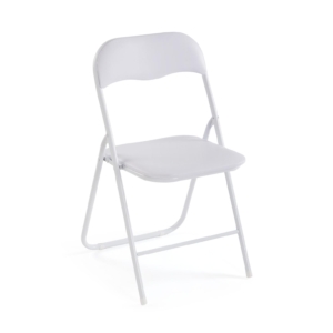 Silla realizada en acero inoxidable. Tapizada en polipiel de color blanco PVC 30%, DOP 30%, otras fibras 40%. Limpieza en seco.