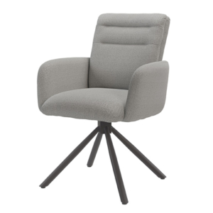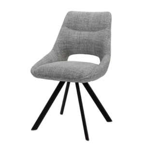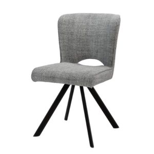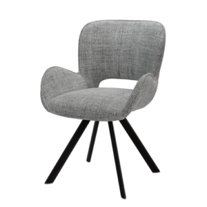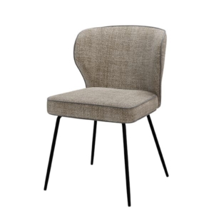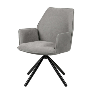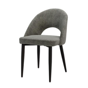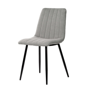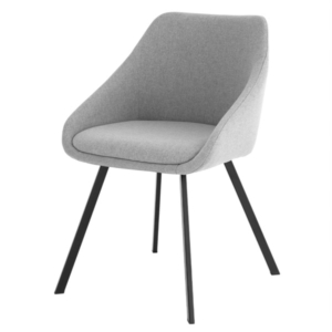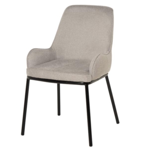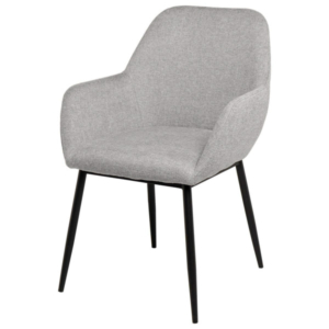 La silla BETINA destaca por su diseño minimalista y su confort superior. Cuenta con un respaldo y reposabrazos acolchados que garantizan una experiencia de asiento cómoda y ergonómica. El tapizado en color gris claro crea un contraste elegante con las patas de metal negro, aportando un toque moderno y sofisticado. Un detalle distintivo es el adorno metálico en negro en la parte trasera del respaldo, que no solo añade un elemento estético, sino que también proporciona mayor sujeción y estabilidad. La silla BETINA se adapta perfectamente a diferentes estilos de decoración y a diversos entornos interiores, siendo una opción versátil y funcional para cualquier espacio.