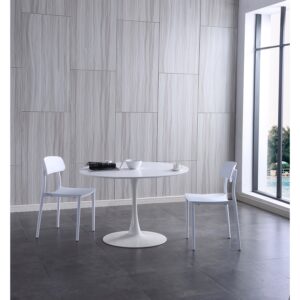 La silla GINA se caracteriza por su diseño elegante y contemporáneo. El asiento, de grosor generoso, ofrece mayor comodidad y estabilidad, mientras que el respaldo, ligeramente curvado, está diseñado para adaptarse ergonómicamente a la forma de la espalda, brindando una experiencia de asiento más cómoda y relajada. Este último, además, destaca por su distintivo patrón de rejilla de tiras anchas entrecruzadas, aportando un toque moderno y sofisticado. Fabricada completamente en polipropileno de alta calidad, esta silla no solo es duradera, sino que también es apilable, lo que facilita su almacenamiento y transporte.