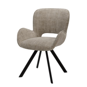 Elegante silla con respaldo alto y estructura acolchada, diseñada para maximizar la comodidad y el uso prolongado. Como detalle de diseño, la barra metálica negra en la parte trasera del respaldo, al igual que sus patas, le confiere un toque sofisticado y moderno. Además, cuenta con reposabrazos que aumentan aún más su comodidad, permitiendo un apoyo ergonómico para los brazos.