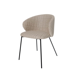Esta silla no solo destaca por su elegante diseño con un toque vintage, sino también por su excepcional confort. Gracias a su respaldo y asiento acolchados, la silla SLOANE garantiza largas horas de uso sin perder comodidad. Además, el respaldo ligeramente curvado proporciona un soporte adicional. Por otro lado, su diseño simple y atractivo se realza con la línea negra de la costura del respaldo, que define su estructura, y las patas metálicas negras que contrastan elegantemente con el resto del diseño minimalista.
