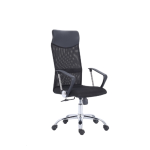 Silla giratoria modelo Maggie.Tapizada en símil piel. Mecanismo basculante con bloqueo. Estructura y brazos cromados.