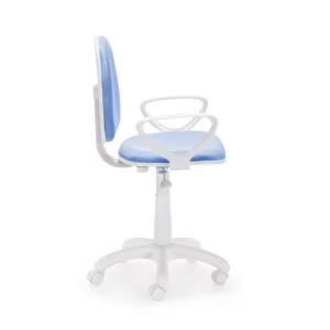 Giratoria y regulable en altura. Tejido 3-D transpirable negro / gris claro. Refuerzo lumbar. Apoyabrazos. Estructura y brazos en color blanco. Medidas: 60 x 60 x 90 – 102 cm.