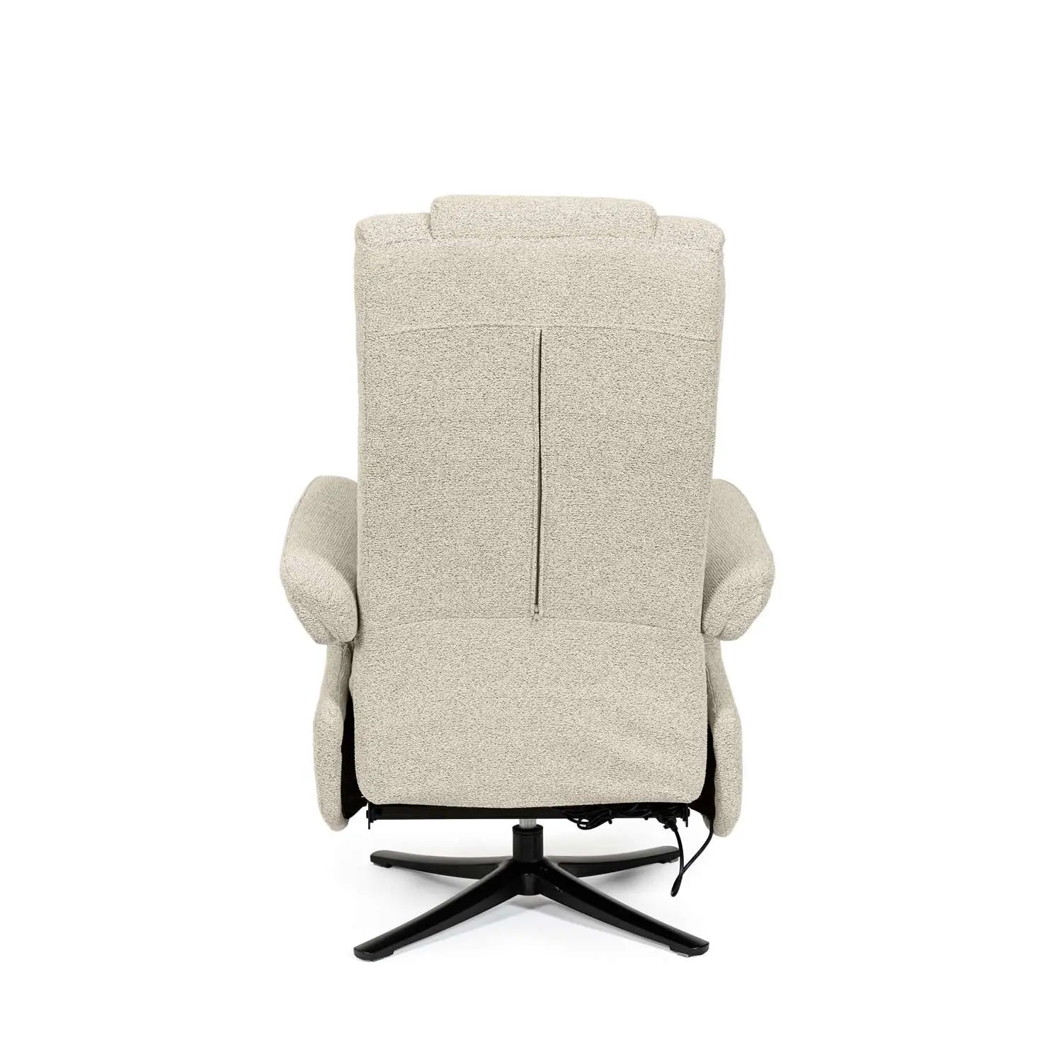 Detalles: PAQUETES: Nº paquetes: 1 Artículos por paquetes: 1 Dimensión paquete: 89 x 75 x 52 cm Peso paquete: 35 kg Manipulación: 2 personas | CARACTERÍSTICAS: Tejido: TUAREG/BEIGE Características tejido: -100% POLIÉSTER -TEST DE ABRASIÓN 40.000 -OEKO-TEX STANDARD 100 Motor: 2 ELÉCTRICOS Elevable: NO Giratoria: SÍ (360º) Requiere montaje: SÍ Peso soportado: 150 kg Código del producto: 00SF100925 Las imágenes y/o colores de los productos pueden variar ligeramente por motivos de calibrado de pantalla, luz ambiente de la fotografía, ángulo de la misma, remesa producción madera, textil, etc. | DIMENSIONES ARTÍCULO: Ancho total: 74 cm Alto total (cerrado): 114 cm Alto total (abierto): 85/89 cm Fondo total (cerrado): 86 cm Fondo total (abierto): 165 cm Altura suelo asiento (cerrado): 50 cm Altura suelo asiento (abierto): 54 cm Altura suelo brazo (cerrado): 66 cm Altura suelo reposapiés (abierto): 49 Altura respaldo: 72,5 cm Ancho respaldo: 50 cm Altura brazos: 20 cm Fondo brazos: 60 cm Ancho asiento: 47 cm Fondo asiento: 50 cm Advertencia tolerancia: +/- 2 cm | MANTENIMIENTO: Recomendaciones: No colocar cerca de fuentes de calor o luz solar. Es recomendable quitar el polvo de los tapizados. Los elementos afilados o metálicos pueden rayar la superficie o producir desgarros. Uso y mantenimiento: Limpiar con paño ligeramente humedecido en agua y jabón neutro con movimientos en círculo. Frotar suavemente. Secar con paño seco. No utilizar productos abrasivos o químicos (lejías, acetonas, disolventes, etc.). Se puede utilizar ligeramente agua y jabón neutro para superficie