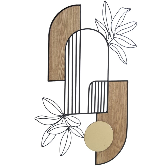 Adorno Pared Metal y Madera Hojas y 5Cm
