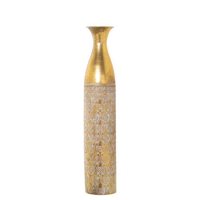 Jarrón Metal Dorado y Blanco