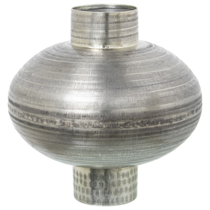 Jarrón Aluminio Tallado Plata Envejecida