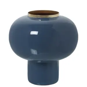 Jarrón Metal Esmaltado Azul y Dorado