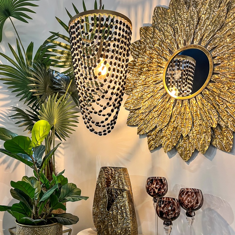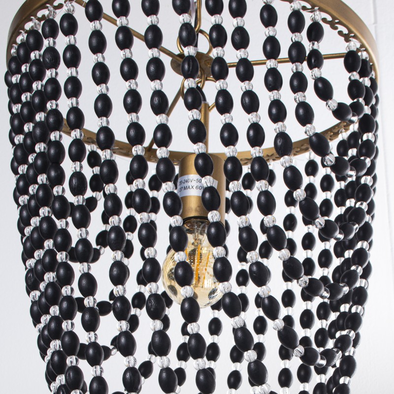 Lámpara Techo Metal C y Cuentas Madera y 1Xe27 y Max.60W