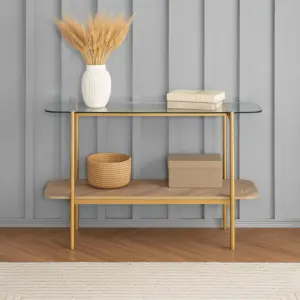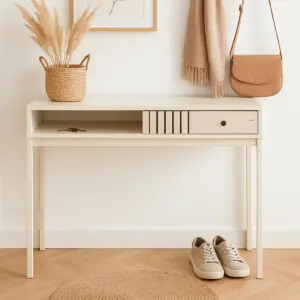 Mesa Entrada Madera Color Roble y Metal Blanco