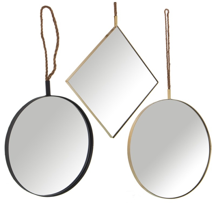 Set 3 Espejos Metal Dorado C y Cuerda y