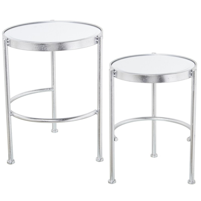 Set 2 Mesas Metal Plateado y Espejo y