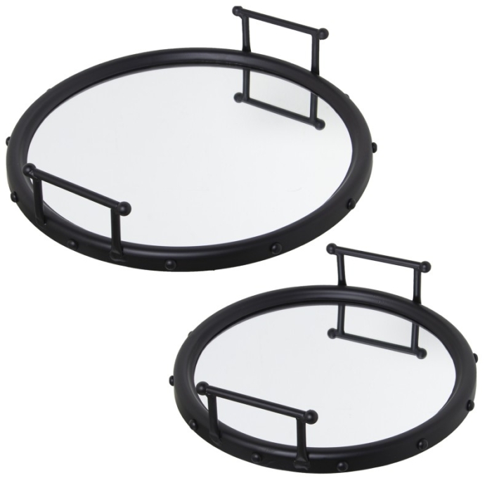 Set 2 Bandejas Metal Negro Espejo y Int:ø41 y Ø33