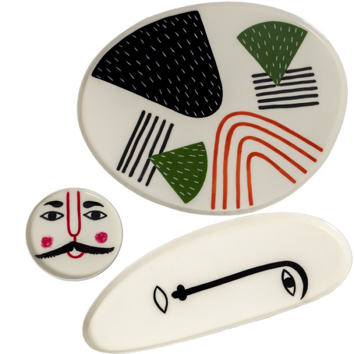 Set 3 Bandejas Esmaltadas Rostros y