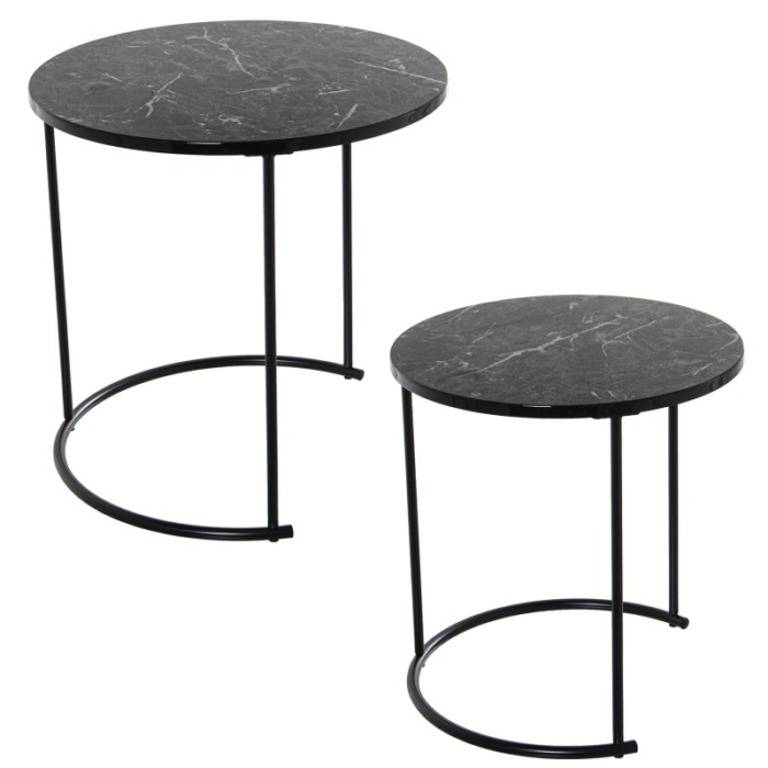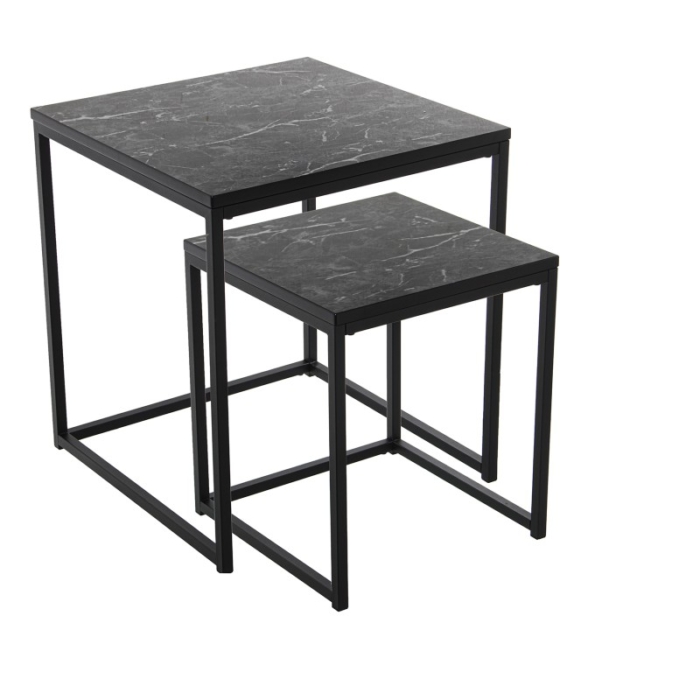 Set 2 Mesas Auxiliares Metal y Madera Acabado Mármol Negro y