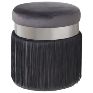 Puf Terciopelo Rosa C y Flecos y Banda Acero Plat:7Cm y Dm y Poliés y Flecos:29Cm