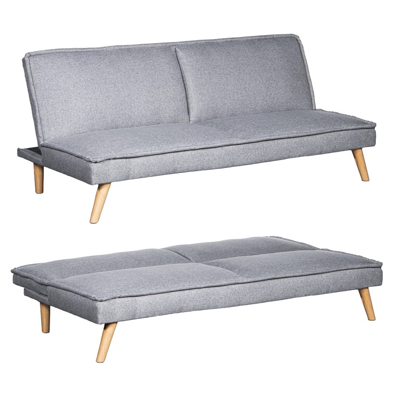 Sofá Cama 3 Plazas Poliéster Gris C y Patas Madera y sin Brazos Cama: