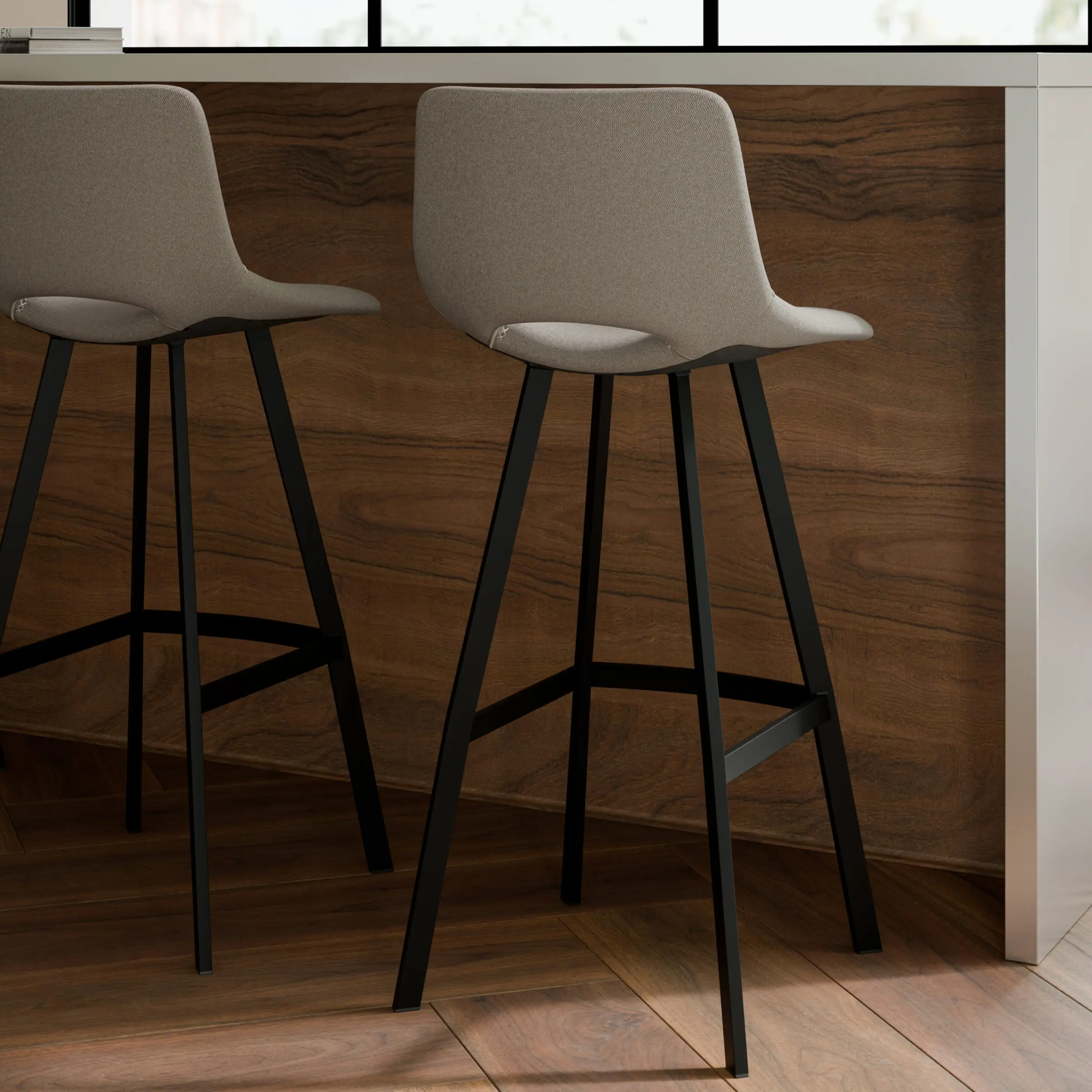 El taburete alto ASTON es ideal para interiores contemporáneos, fusionando funcionalidad y estilo. Su estructura está compuesta por patas de metal y un tapizado de tela en color taupe (100% poliéster), con una ligera curvatura en el respaldo que proporciona mayor comodidad. Además, este modelo cuenta con un reposapiés circular integrado a media altura, asegurando una postura relajada. Descubre su versión baja: CLARK .