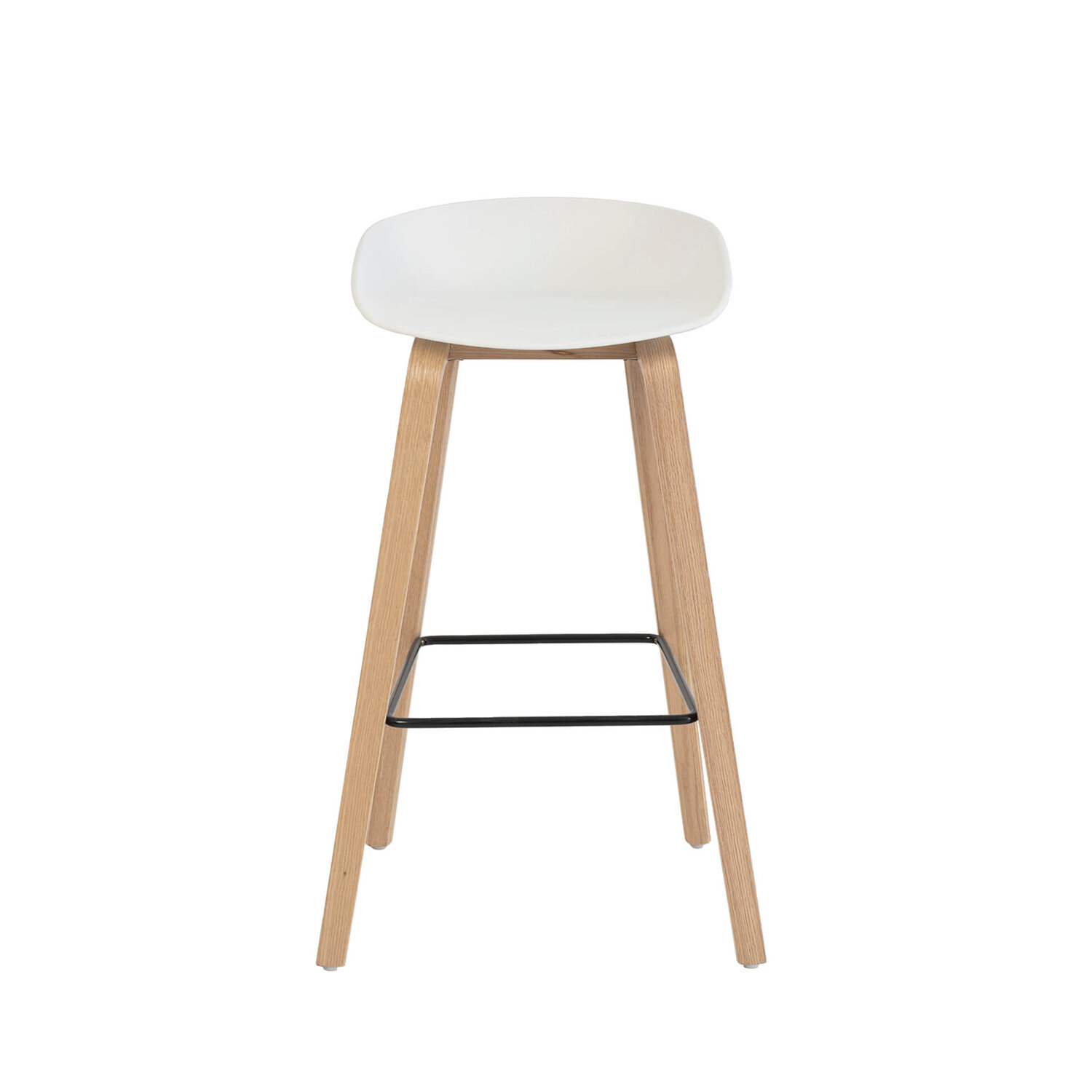 El taburete alto RONIE destaca por su elegante estructura de patas de madera y su asiento de polipropileno blanco, diseñado ergonómicamente para ofrecer la máxima comodidad. La combinación de sus líneas estilizadas y el reposapiés metálico no solo asegura estabilidad, sino que también aporta un toque moderno y sofisticado. Este diseño único y contemporáneo convierte al taburete RONIE en una opción ideal para cualquier espacio, ya sea en la cocina, el bar o el comedor. Descubre su versión baja: RUTH .